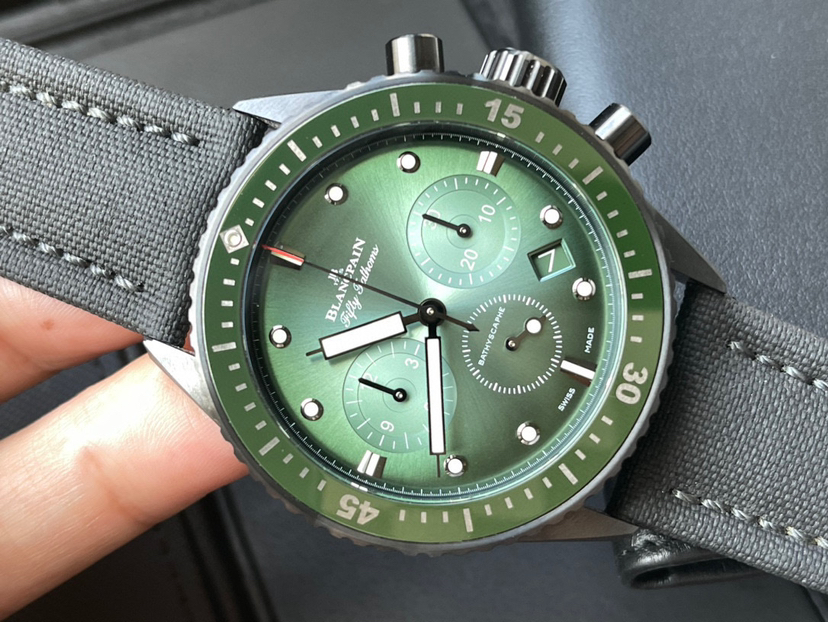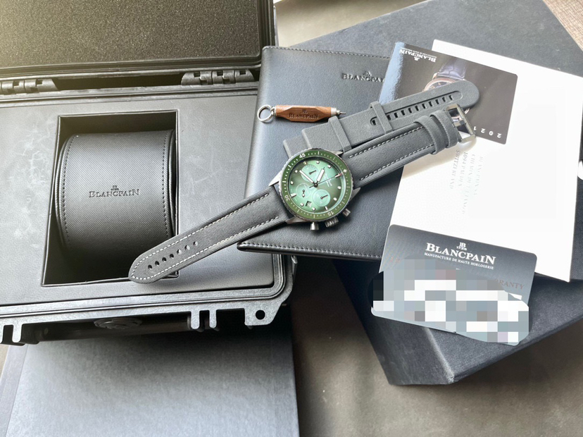 宝珀五十噚5200-0153-B52A极光绿,黑陶瓷材质,表径43.6mm,全套21年7月保卡,原价133500,特价出