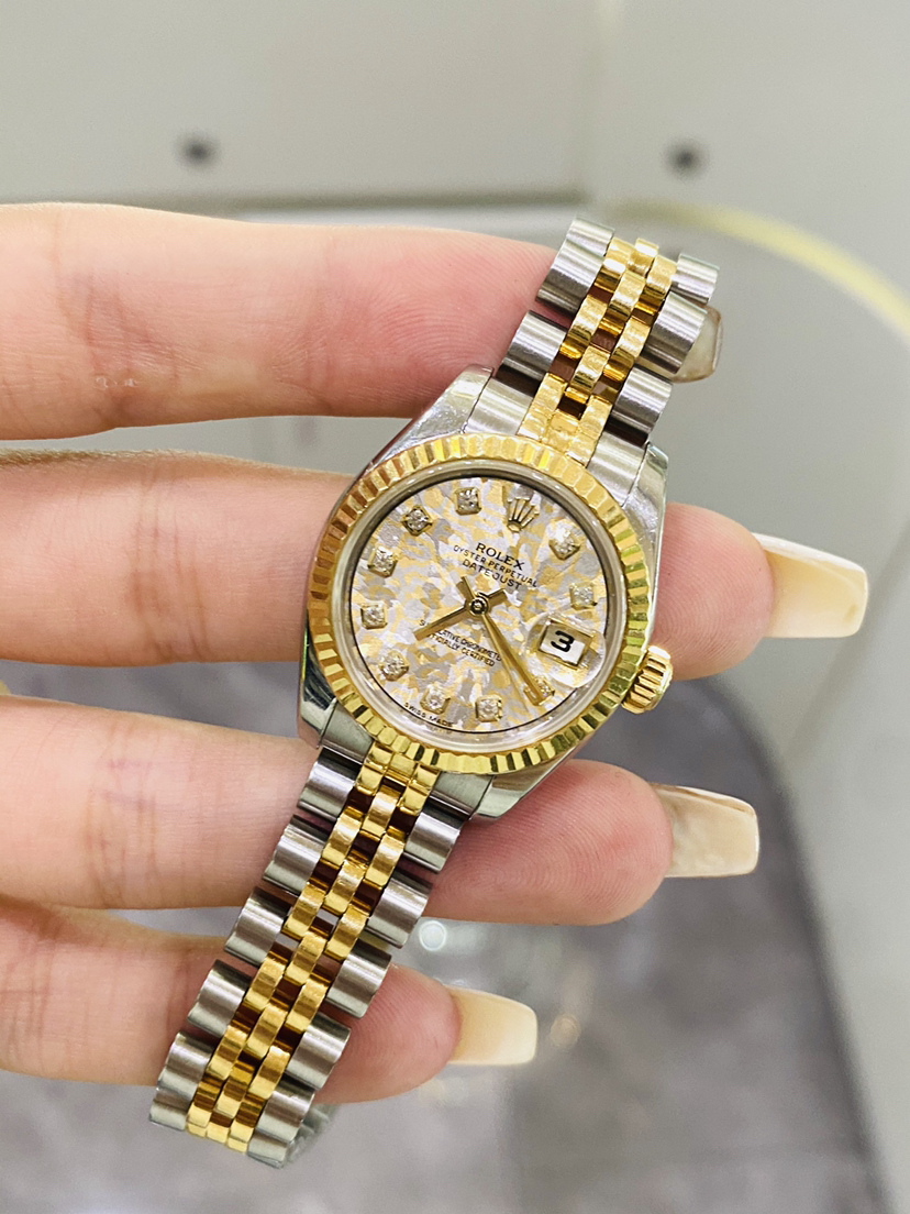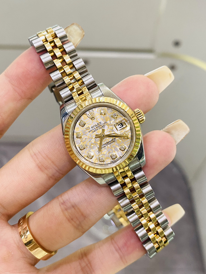 劳力士女装日志系列179173黄色金晶盘镶钻