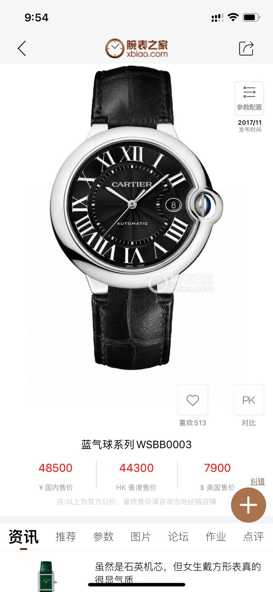 卡地亚蓝气球BALLON BLANCWSBB0003机械男性