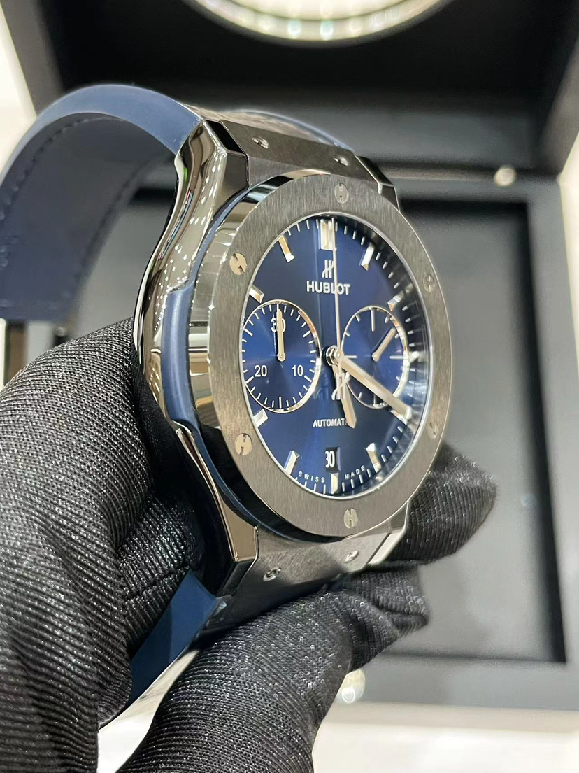 宇舶经典融合521.CM.7170.LR 男士自动机械腕表 表径:45mm 陶瓷外圈 最美蓝面 ,完美成色 实拍图 专柜售价87400元,店里二手现货好价
