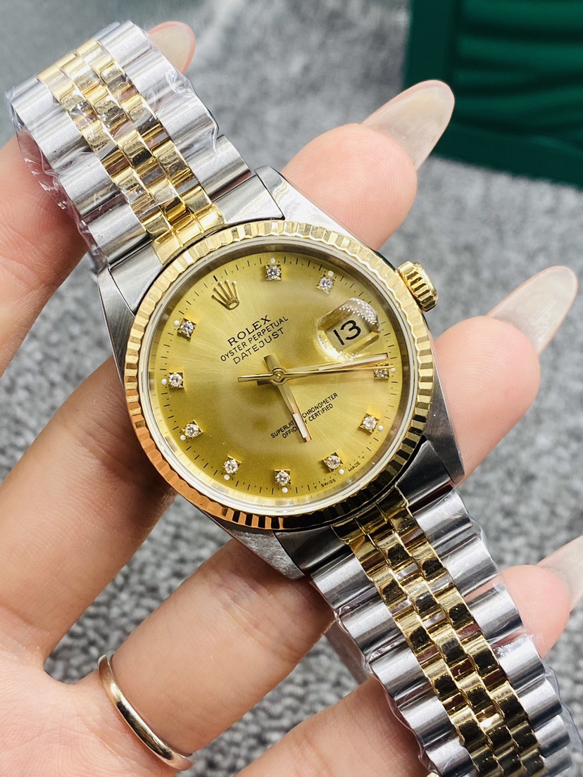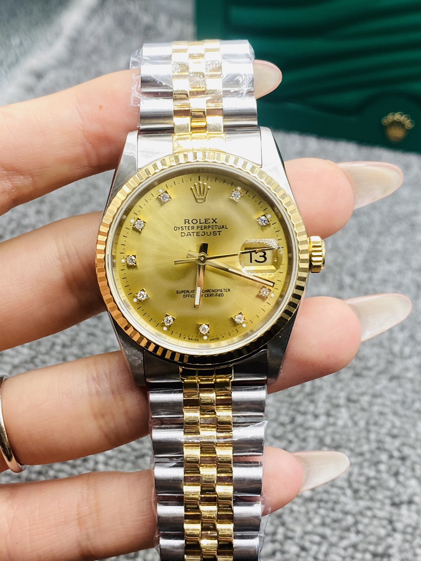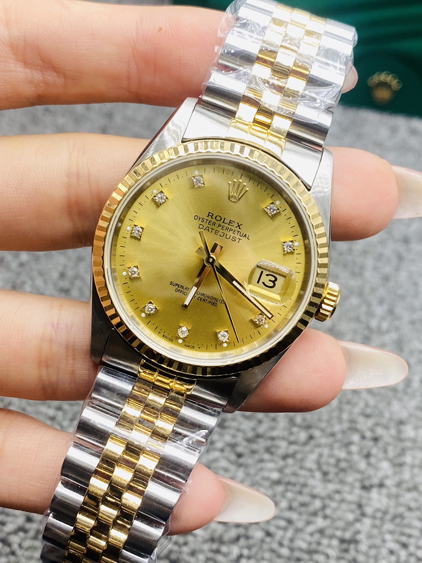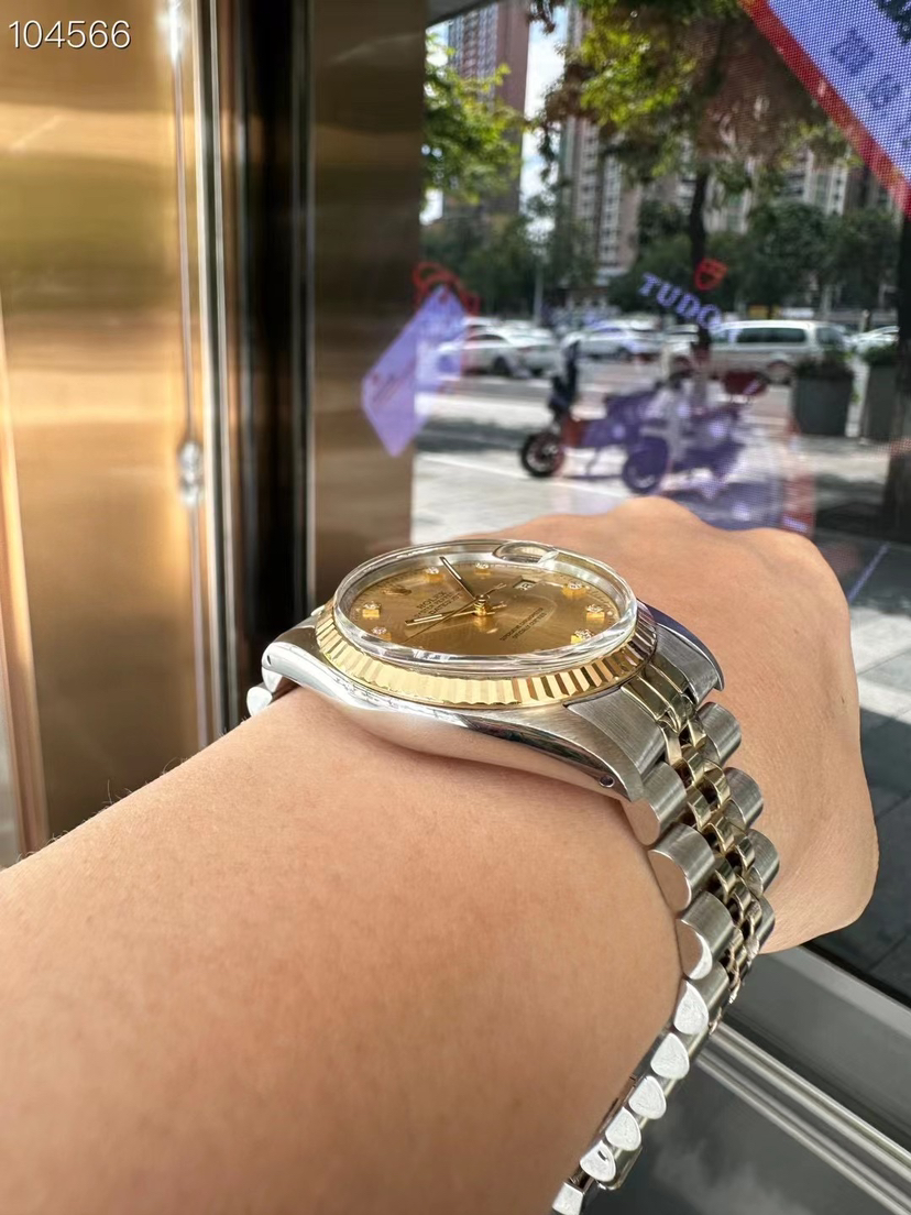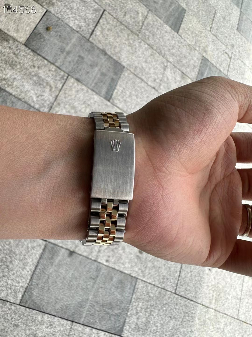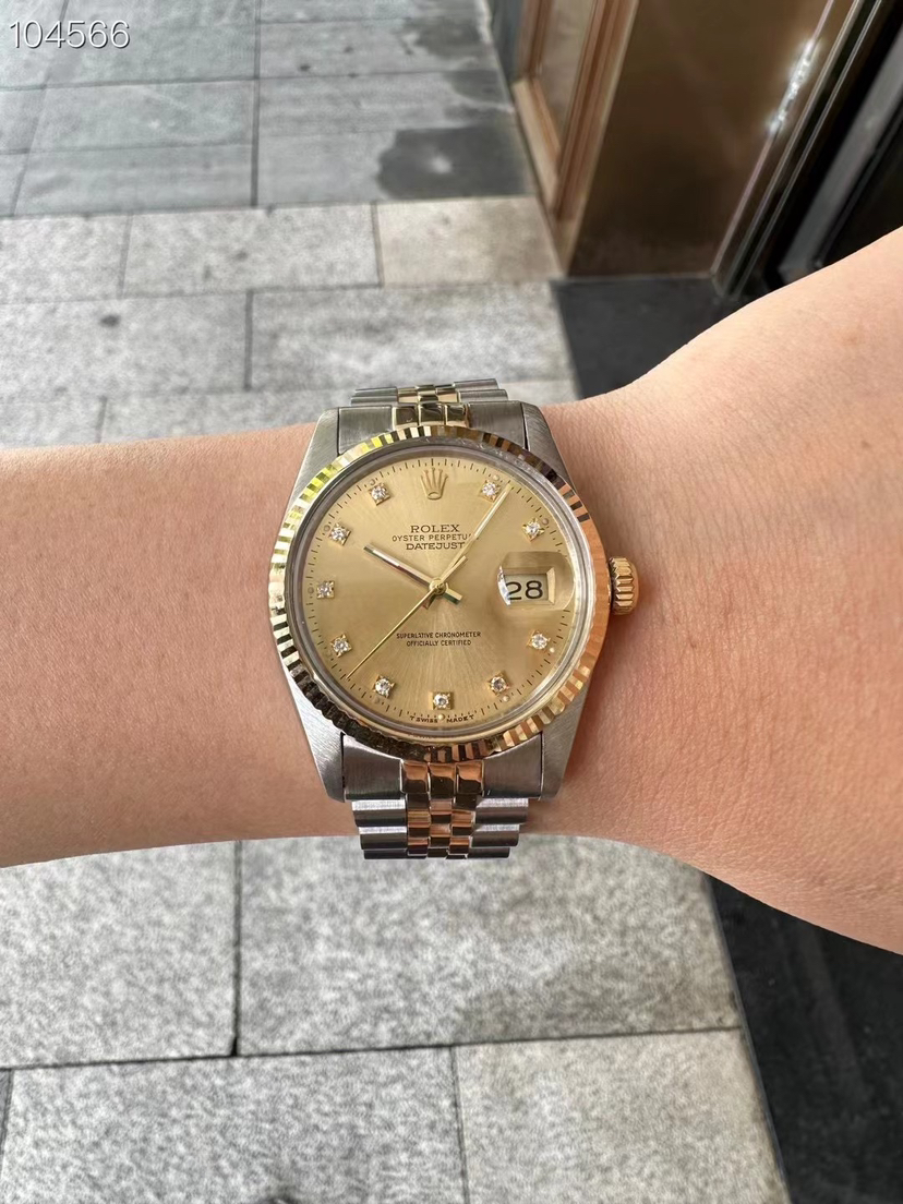 劳力士日志型男自动机械16013金钻18K黄金精钢附件:极品单表表径36mm,日期,参考公价104000后盘后钻后针