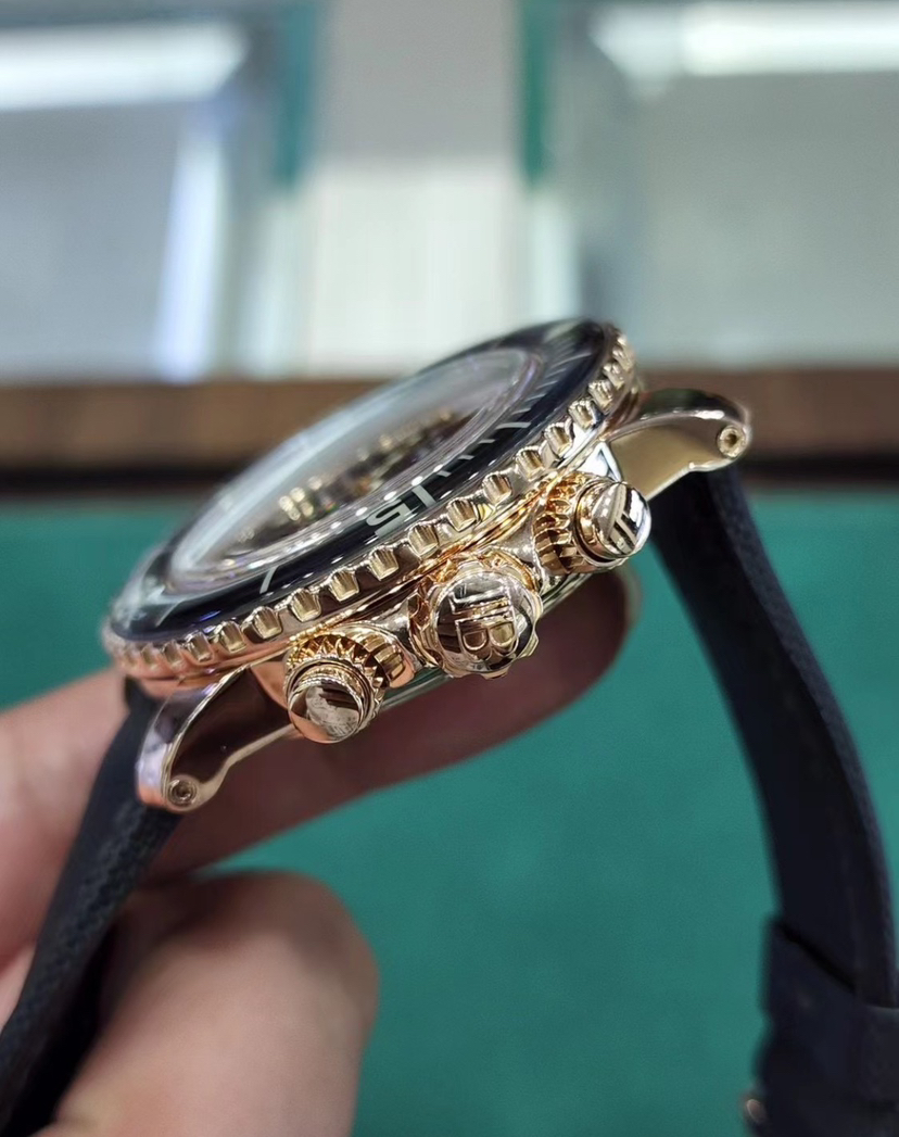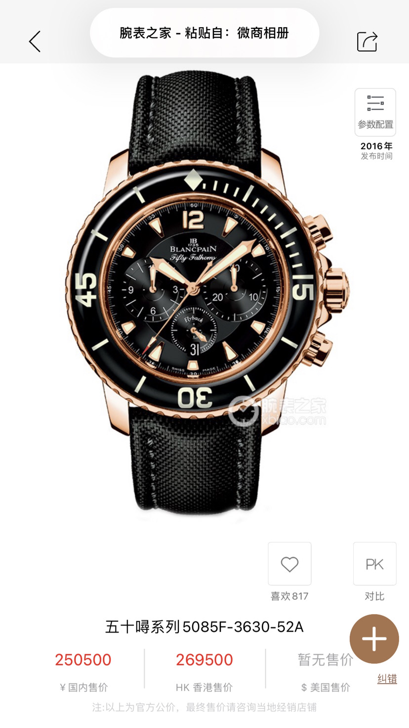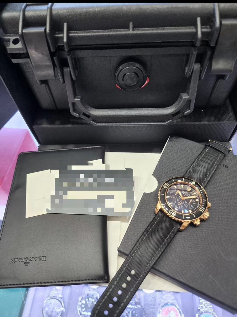 宝珀五十噚系列型号:5085F-3630-52A,腕表特征:自动机械男士 18K玫瑰金材质,45mm表径,黑色陶瓷圈超强夜光,附件:22年极品全套公价250500