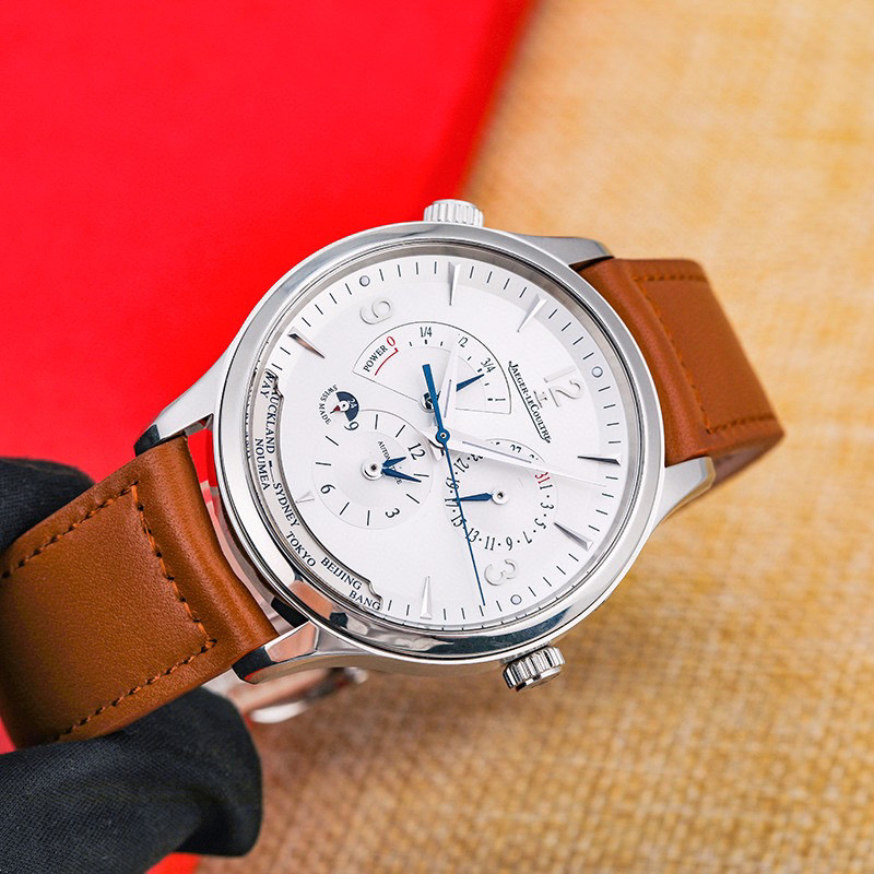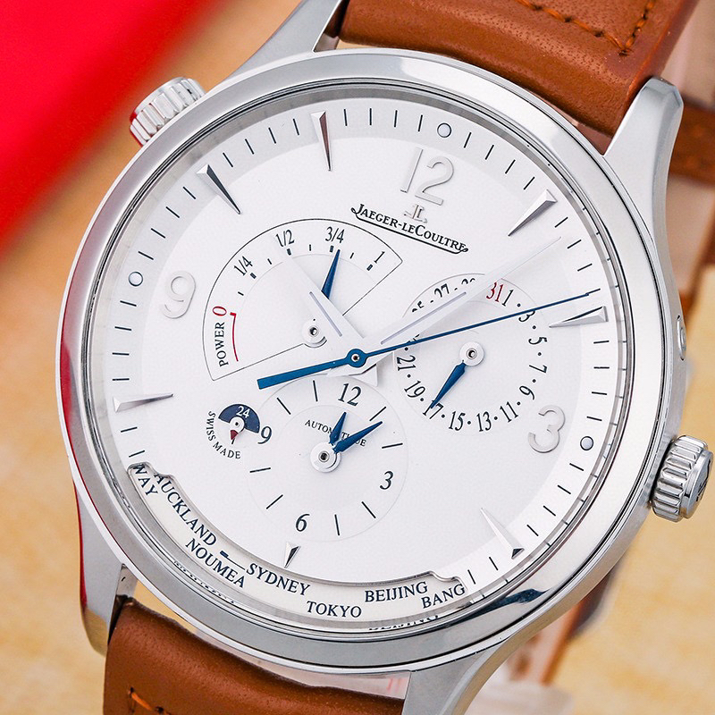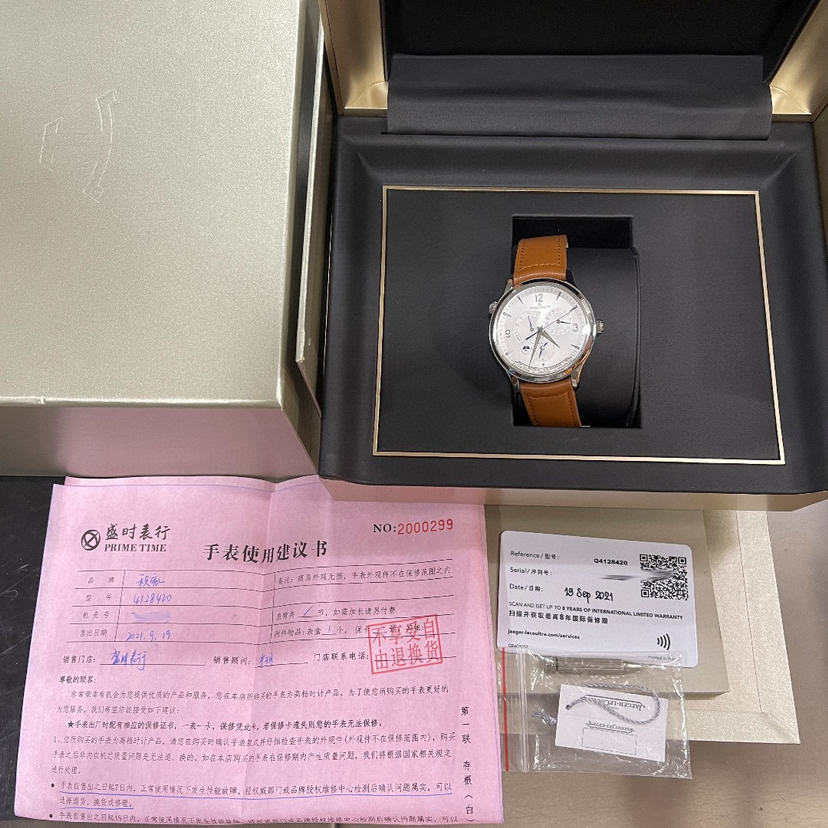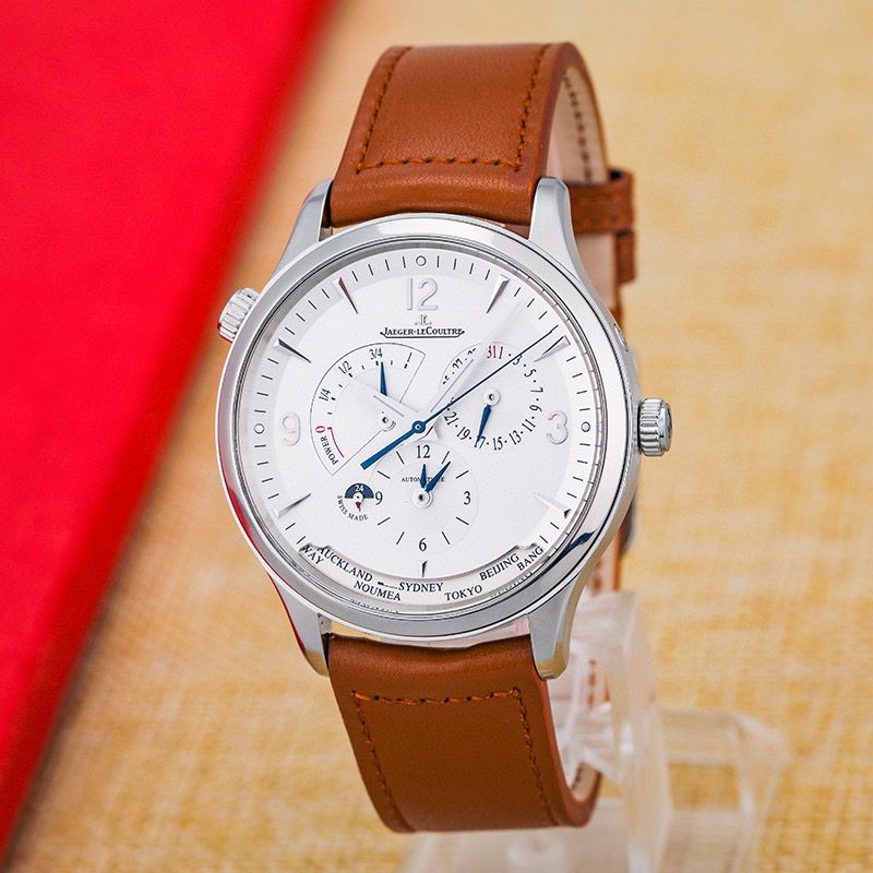 积家地理大师最新款Q4128420男士机械腕表,40mm表径,新款939AA机芯,22K黄金自动舵, 蓝钢螺丝,表盘内搭配双时区功能,24小时黑白昼夜显示以及动力储存功能,21年9月全套,8年联保,专柜售价113000,现货好价61000