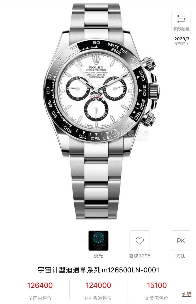 新款白迪 劳力士m126500LN-0001新款钢迪(白熊猫)40毫米