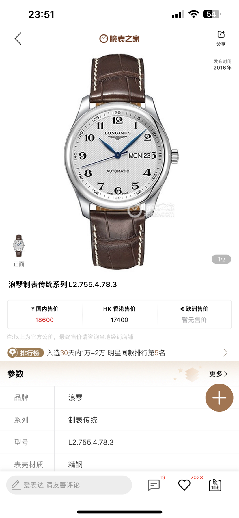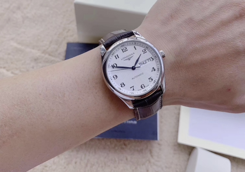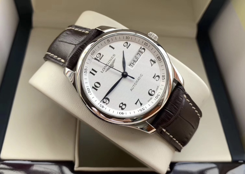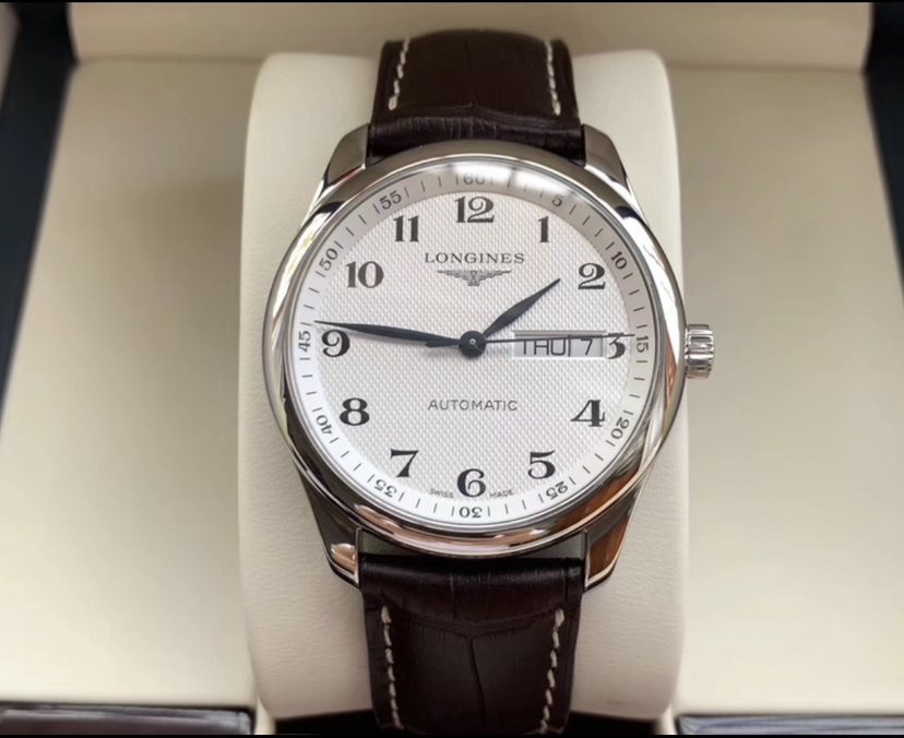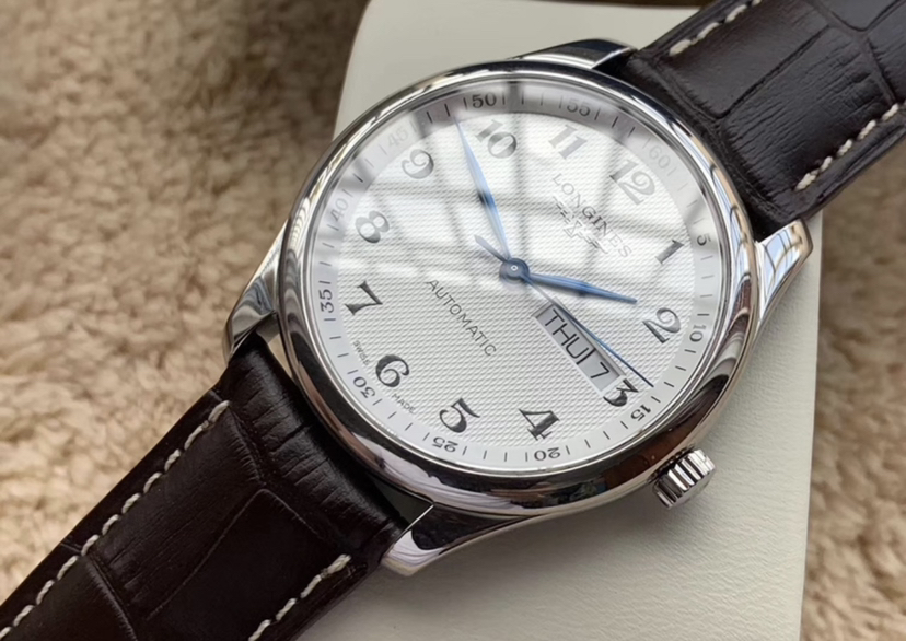 浪琴名匠L2.755.4.78.3 系列男士自动机械腕表 表径38.5mm 全套 精钢材质麦粒"饰纹,蓝钢指针,漆绘阿位伯数字,蓝钢指针,日期显示 星期显示 双历名将上手更显质感 原价18600 现货好价