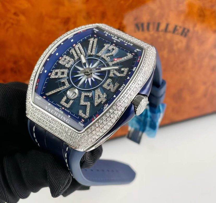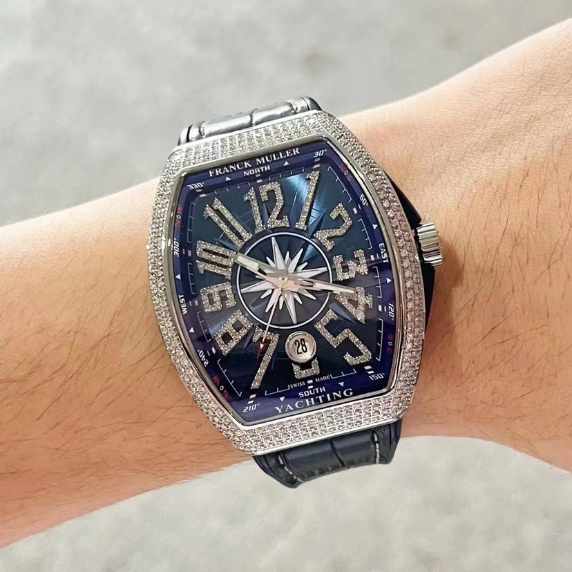 法兰克穆勒MENSCOLLECTION系列V45蓝游艇,自动机械男表,44x51mm表径,高品质后镶钻,上手高端奢华,全新全套 ,参考原钻公价50多万,好价分享