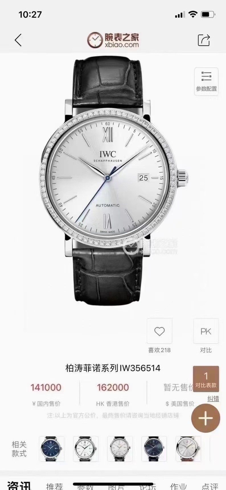 【万国】波涛菲诺系列⌚️男士机械表 后镶钻 IW356501 红60 成色一流 40mm表盘 原价39500 原镶钻原价14万多 热门后钻款 店内现货好价2.x万💰