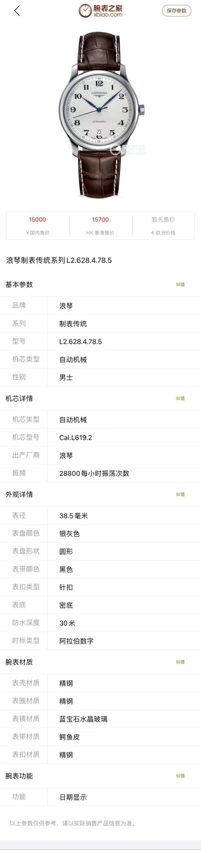浪琴名匠L2.628.4.78.5机械男性