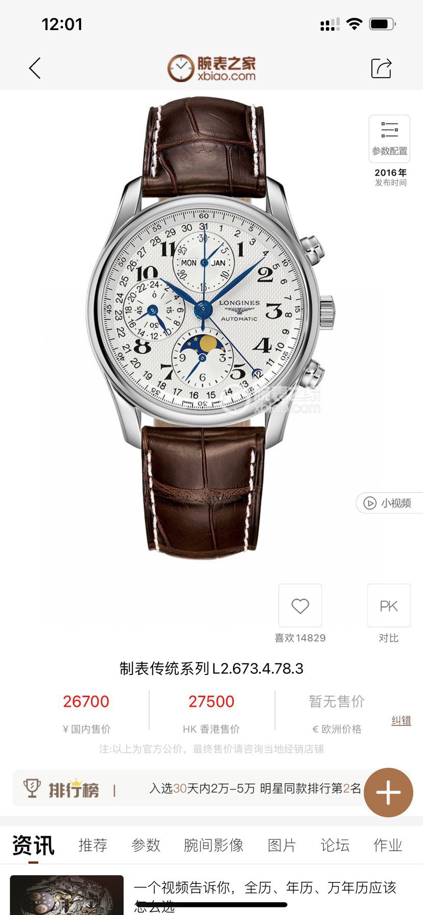 浪琴/Longines 浪琴表名匠系列 L2.673.4.78.3 自动机械机芯 精钢 Ø 40.00 mm 专柜价 27900