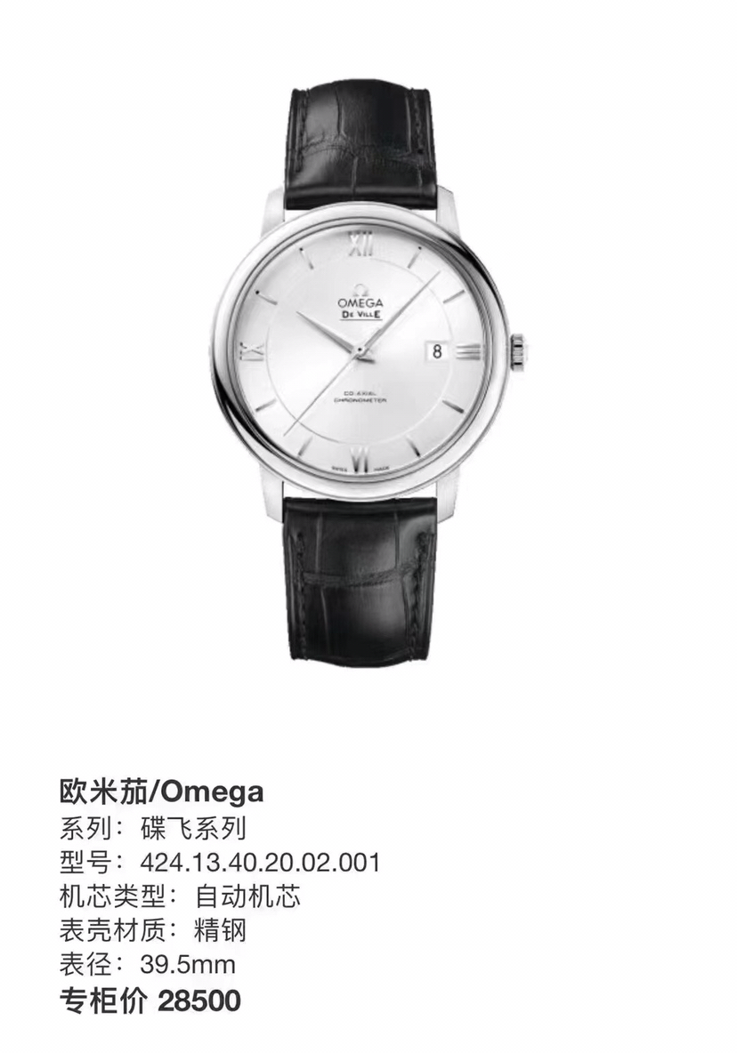 欧米茄碟飞系列424.13.40.20.02.001自动机械男款白盘 最经典的一款 表径39.5mm 全套附件2022年 工价28500 现店内现货好价️