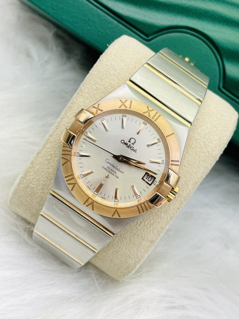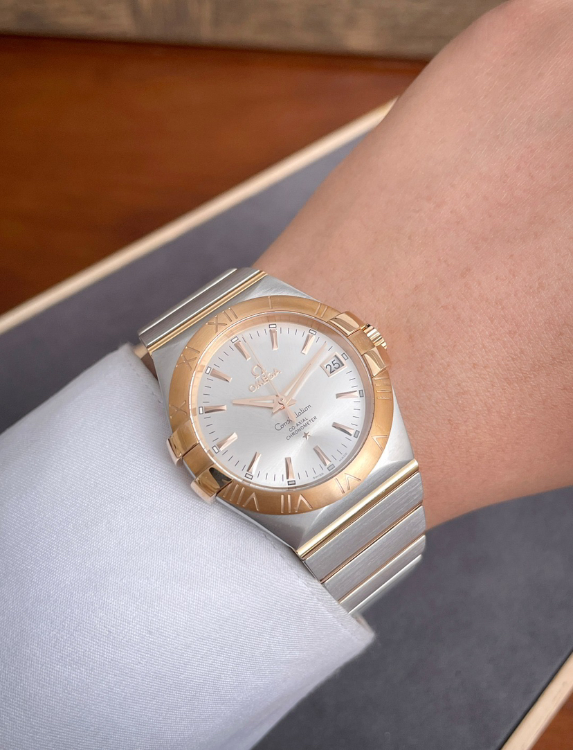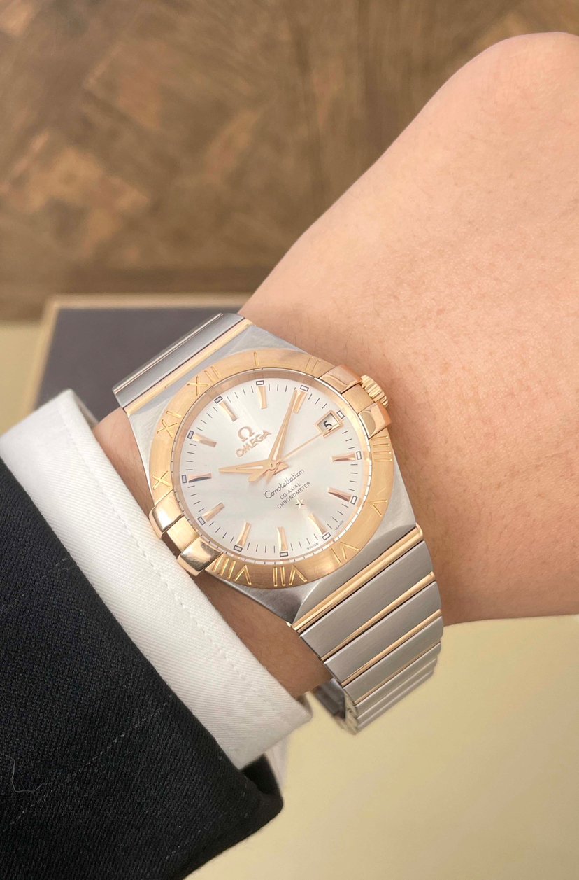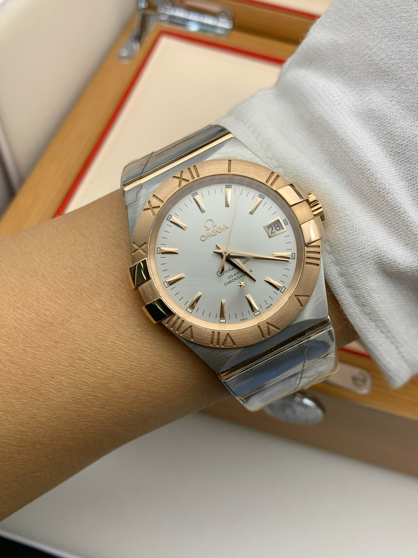 欧米茄星座系列18K玫瑰金精钢自动机械男表