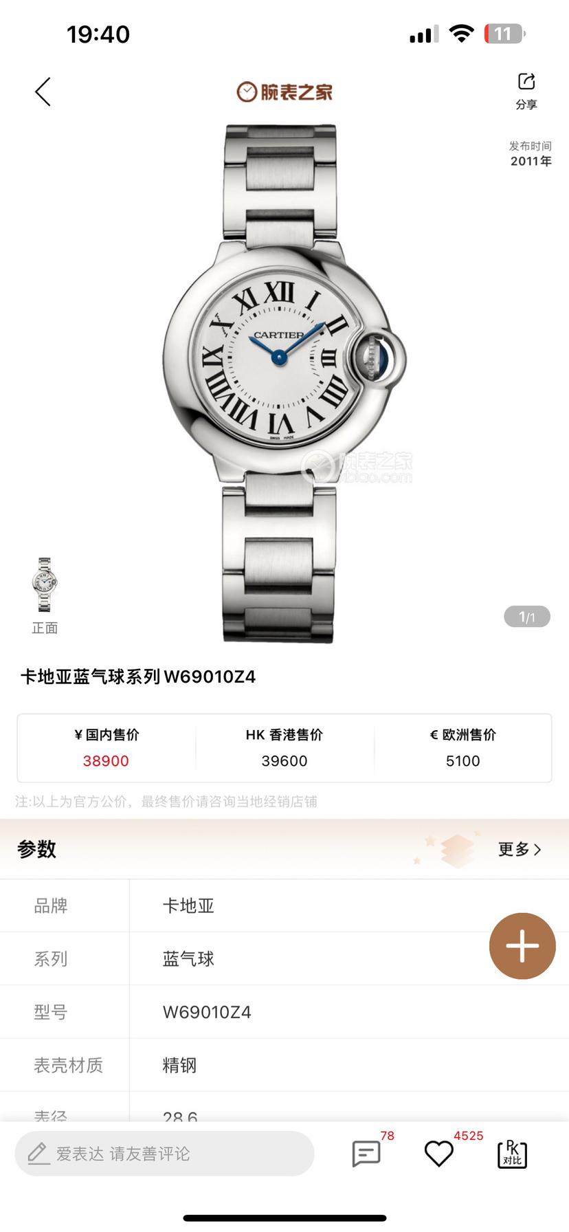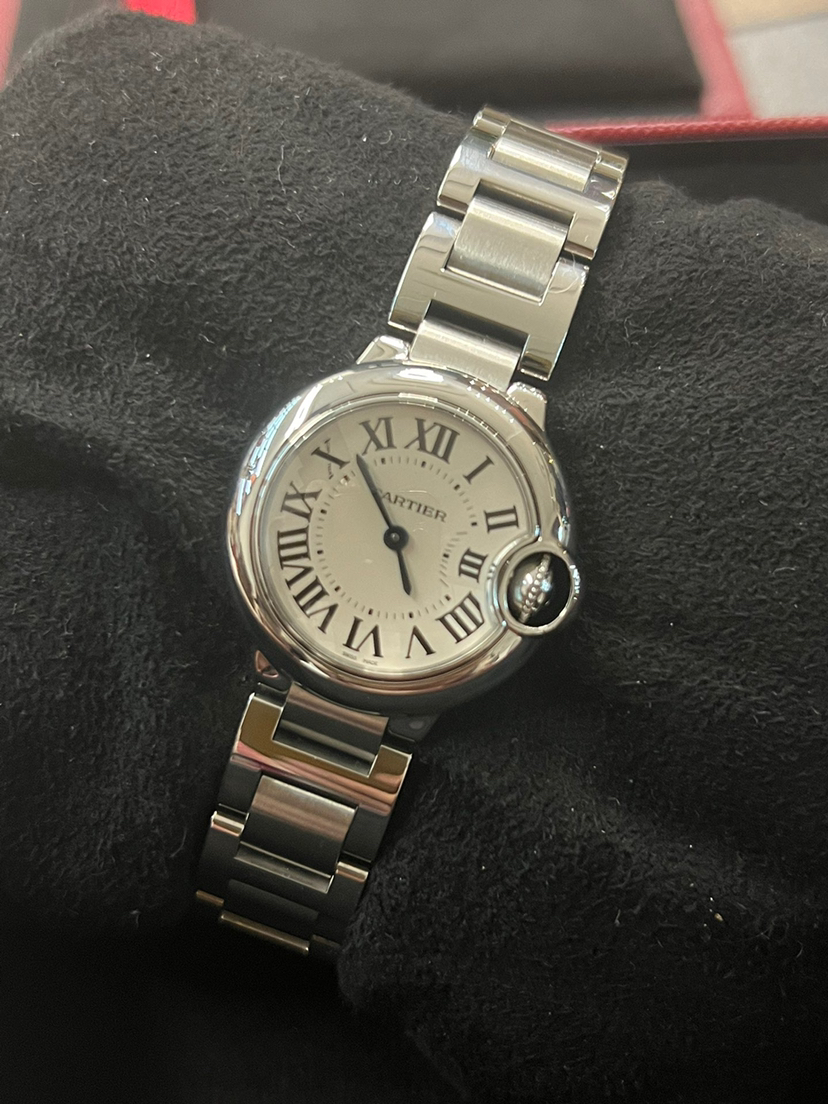 卡地亚W69010Z4蓝气球系列女士石英腕表,罗马数字刻度蓝钢指针,表径28.6毫米,原价38900