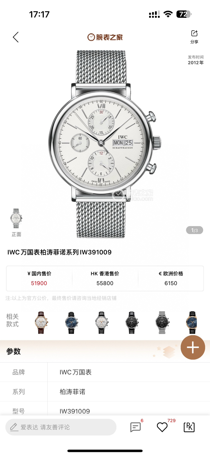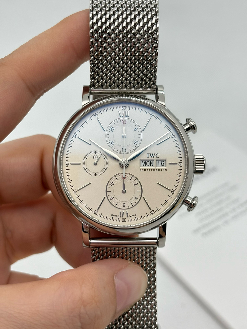 万国柏涛菲诺系列IW391009 白盘 计时款 日期星期显示 自动机械 42mm 米兰带 佩戴舒适 极品单表 公价51900 本店现货好价
