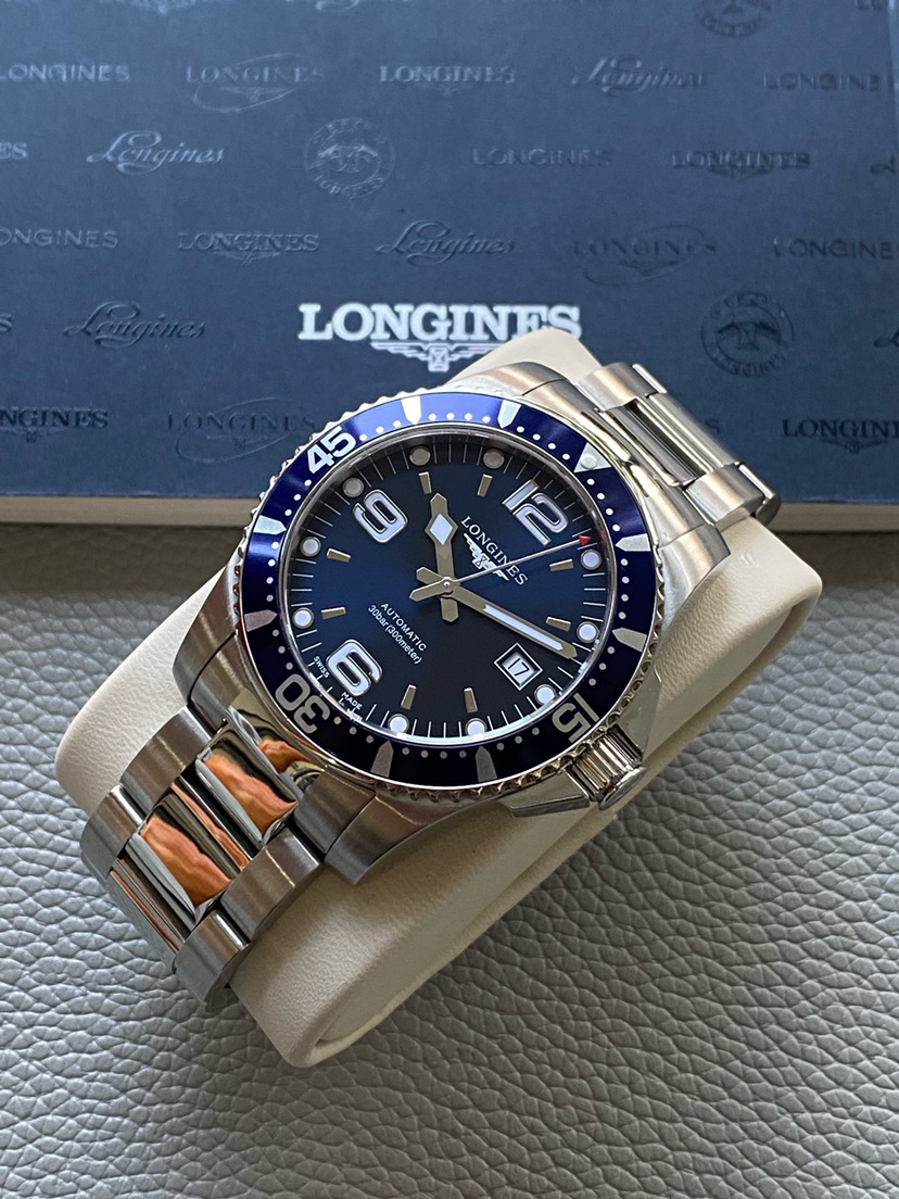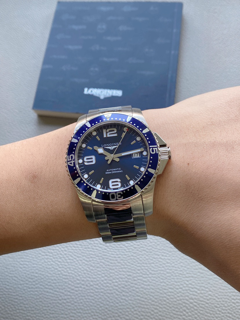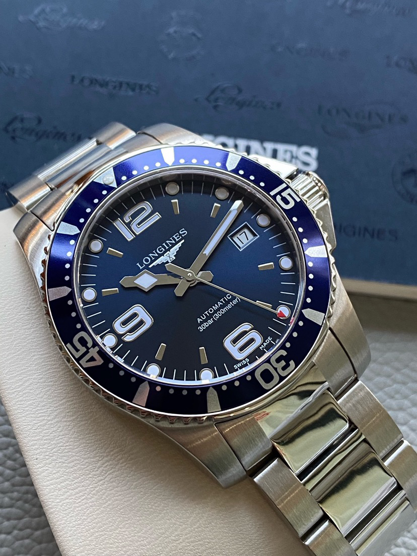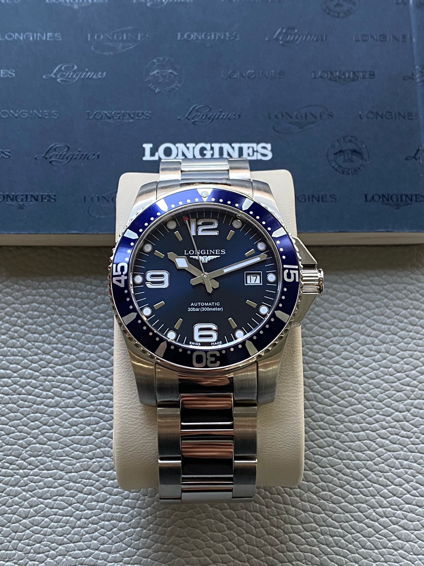 浪琴康卡斯L3.742.4.96.6 自动机械 直径41mm ,经典蓝盘设计,铝圈。旋入式表冠,防水高达300米,搭载L888机芯,走时完美 官方工价11500 附件 极品全套