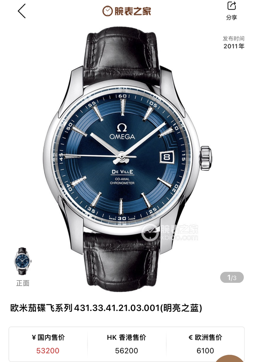 欧米茄碟飞 明亮之蓝 431.33.41.21.03.001机械男性