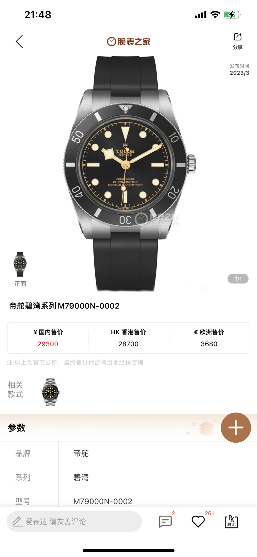 帝舵/Tudor 碧湾54型 m79000n-0002,自动上链,钢表壳 37毫米,专柜价 29300,好价未使用小手腕福利~
