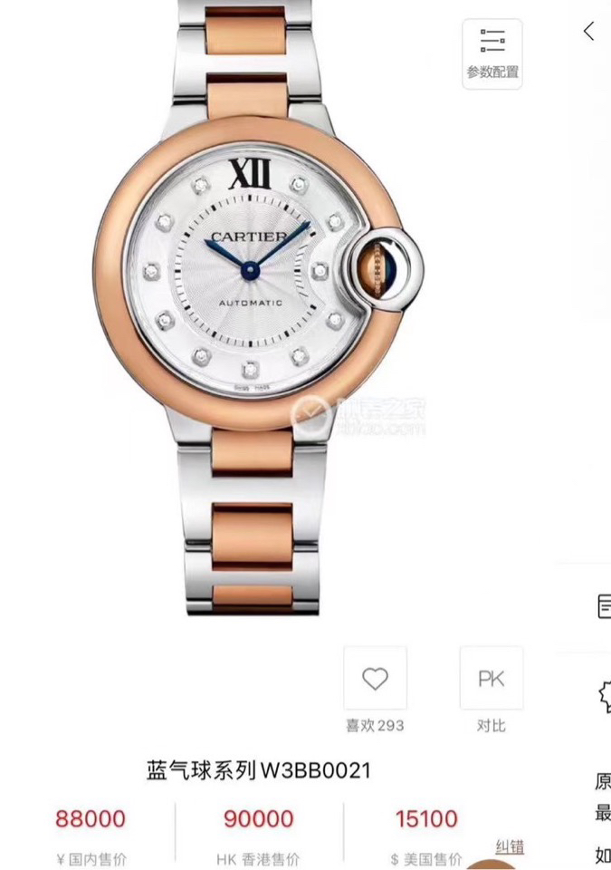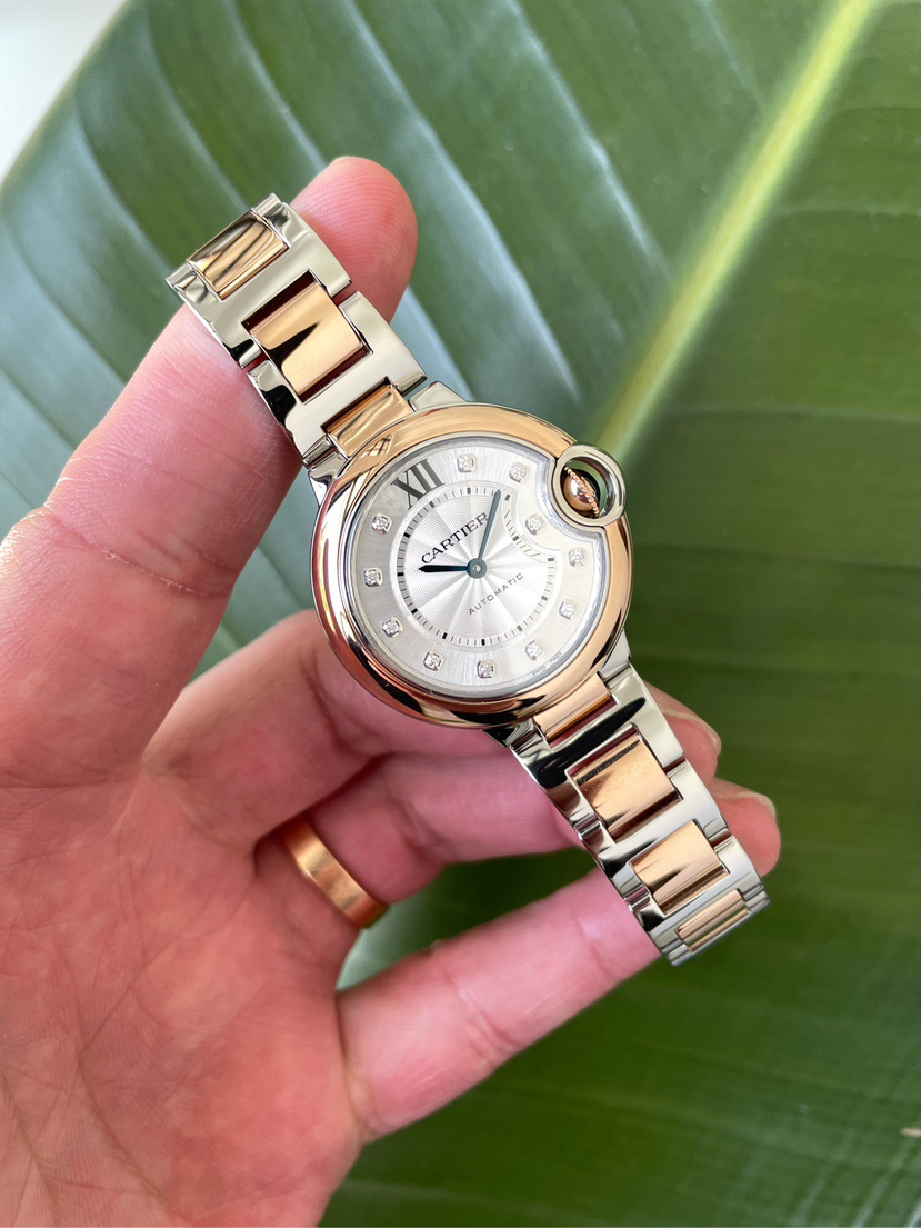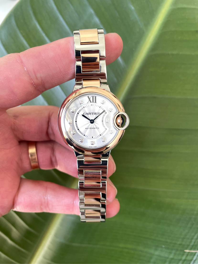 卡地亚蓝气球系列W3BB0021女士机械腕表,表径33腕周 最新款快拆间玫瑰金表带,玫瑰金圈内钻款原价88000现好价