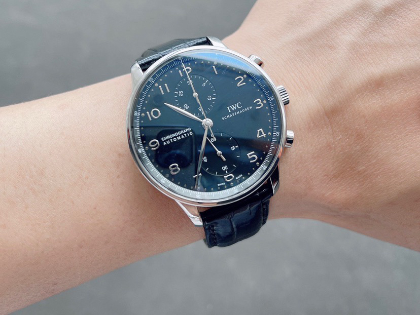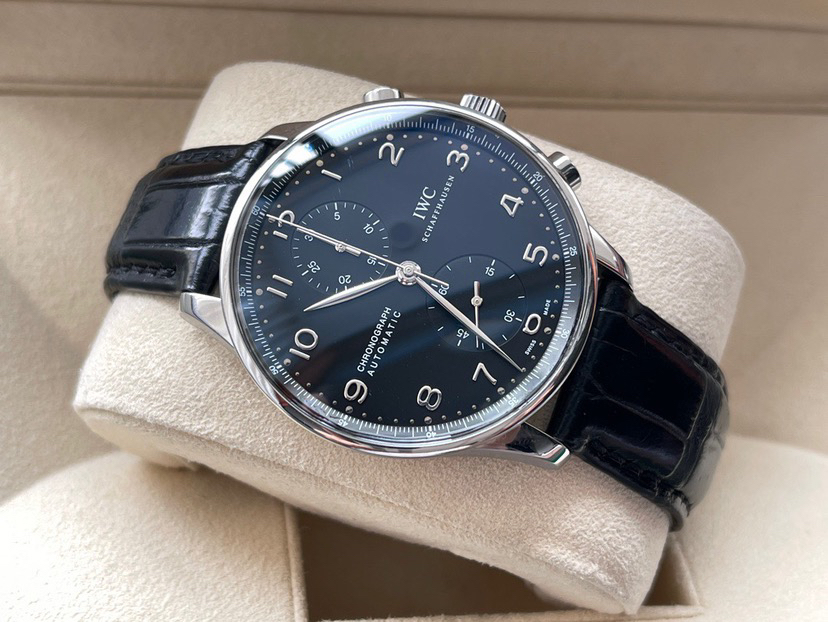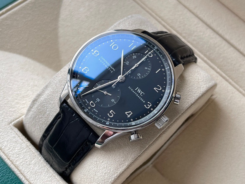 万国葡萄牙计时系列IW371447 表径40.9成色完美如图 热门款精美黑色表盘 多功能计时阿拉伯数字刻度显示 简约大气,附件:极品单表 专柜价:58700