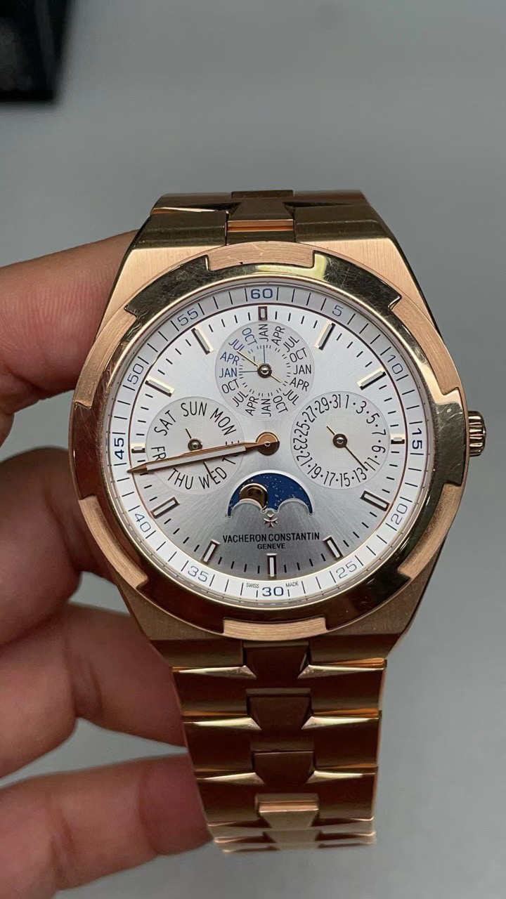 江诗丹顿/Vacheron Constantin OVERSEAS纵横四海系列 4300V/120R-B064 自动上链 粉红金 41.5毫米 专柜价 860000,精品21年11月全套全长三条表带,带徐步天报告,现货好价拥有~