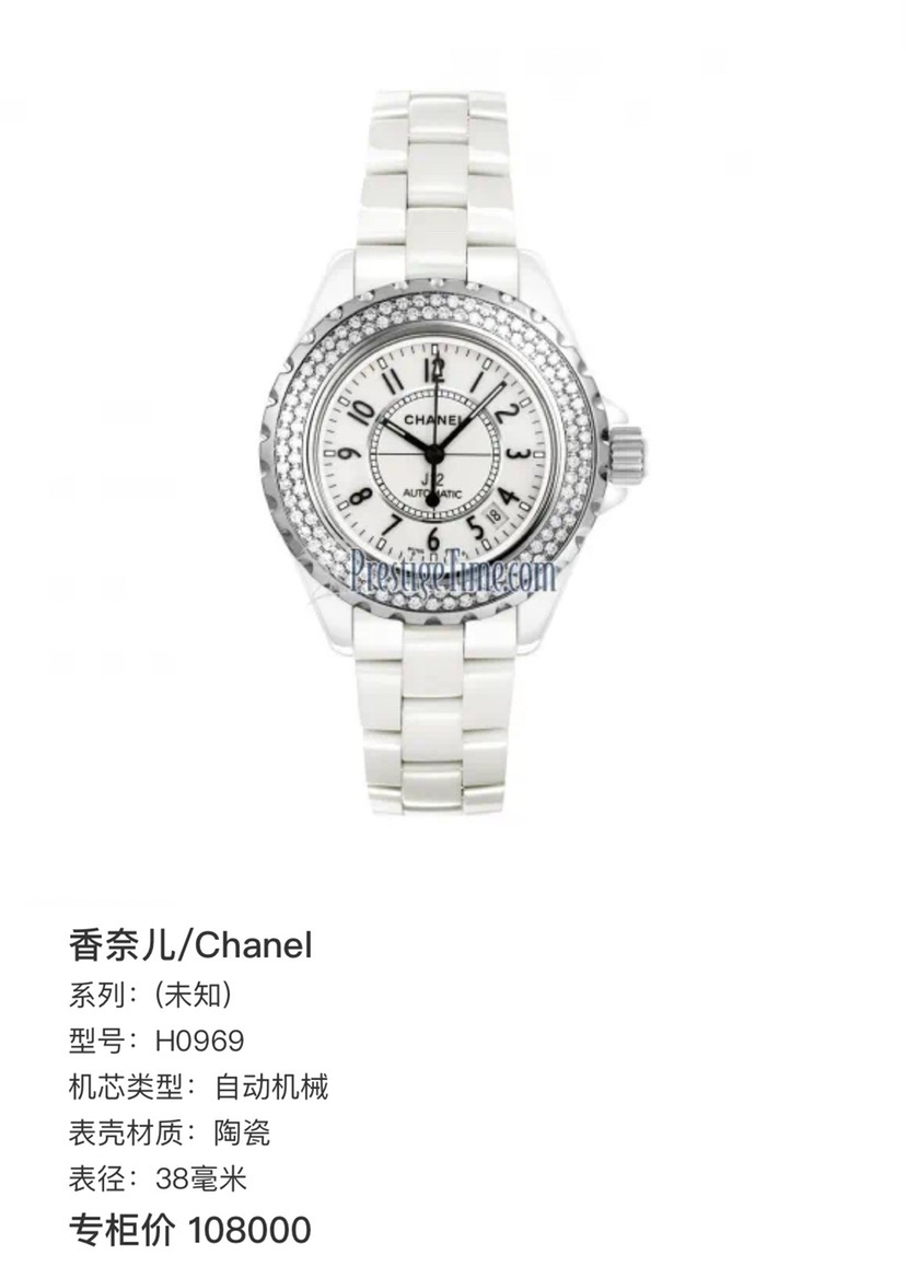 香奈儿/Chanel J12系列 型号:H0969 自动机械 陶瓷 38毫米 附件:单表原钻 专柜价 108000