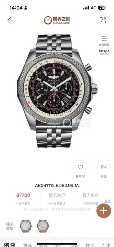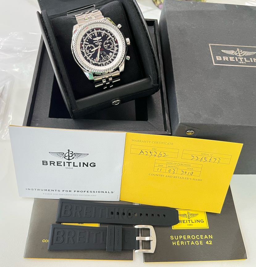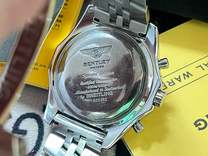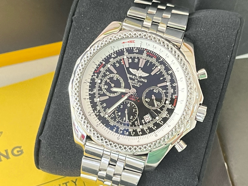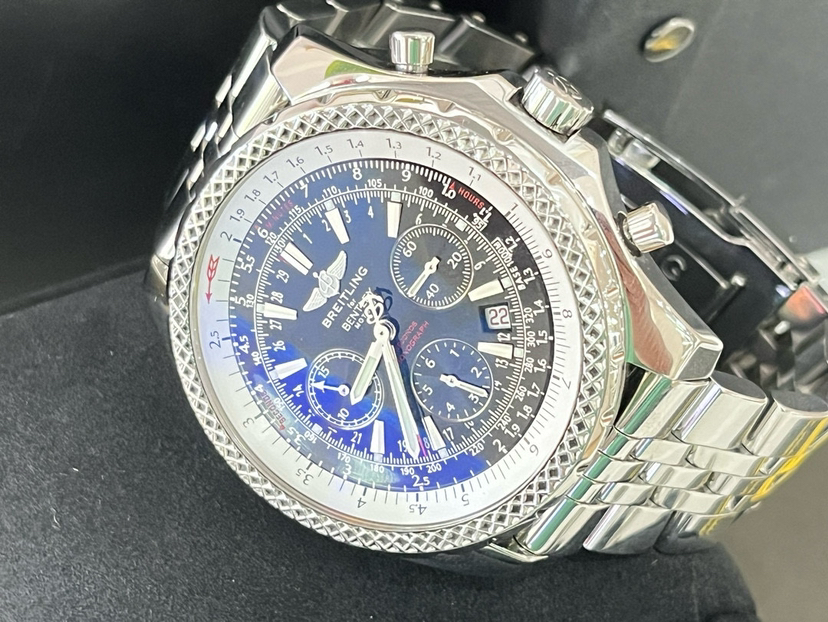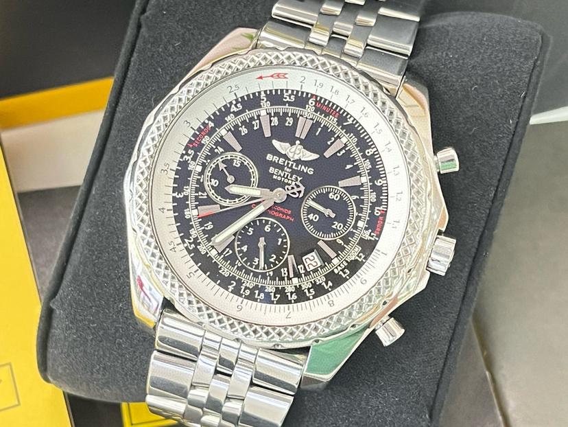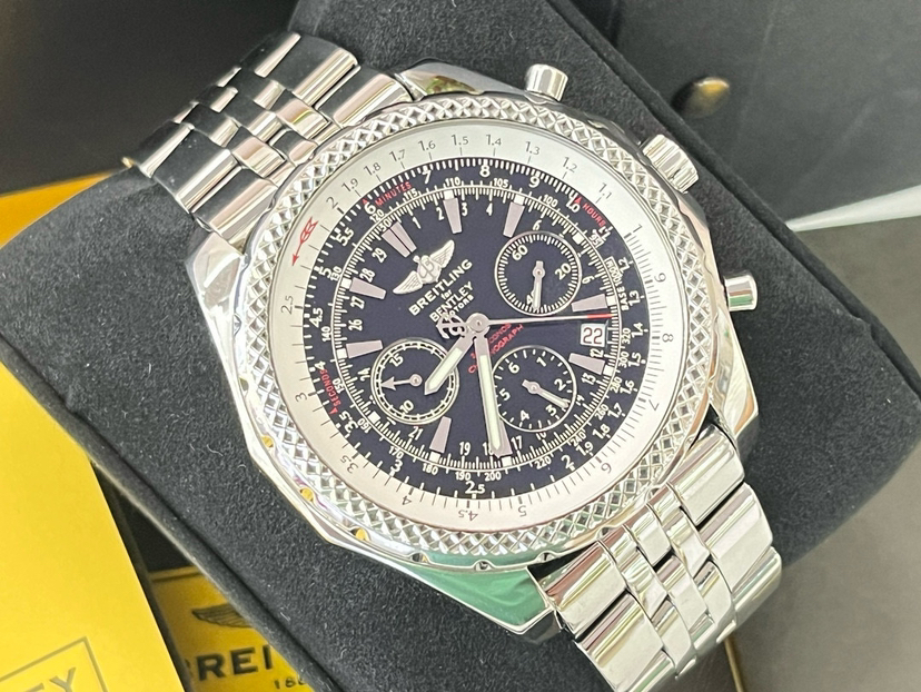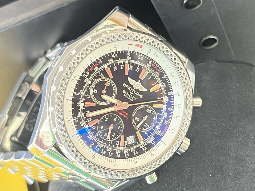 百年灵 宾利系列 多功能计时机芯。 2019年3月份全套购入。 表径47mm 非常霸气 底盖宾利车标标志 百年灵与宾利合作推出表款,参考工价87700,现大全套超级好价只要