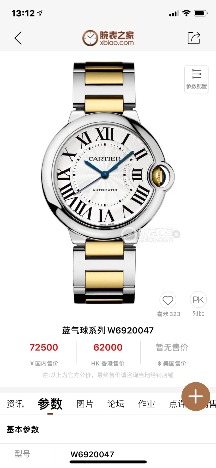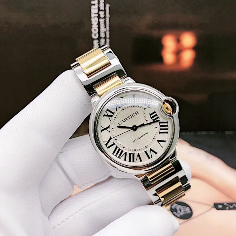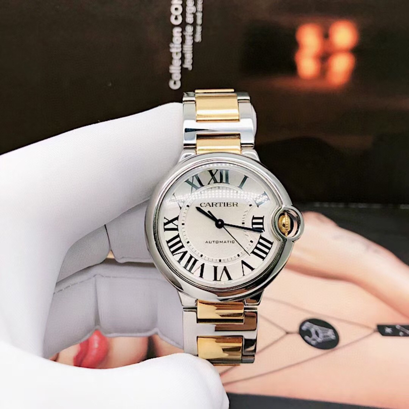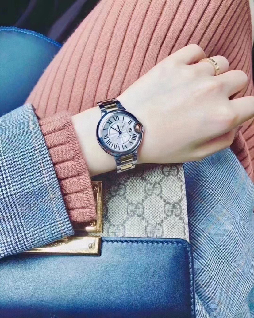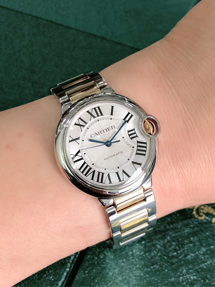 卡地亚蓝气球腕表 W2BB0030 自动上链机械机芯 18K黄金与精钢 36.6毫米 专柜价 72500~