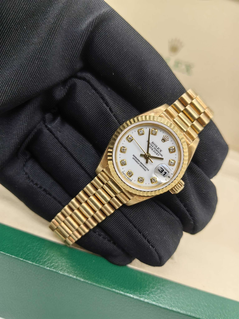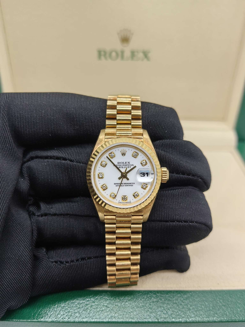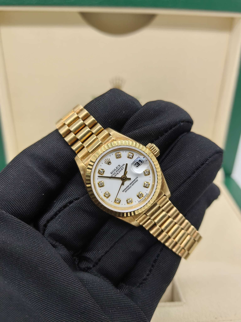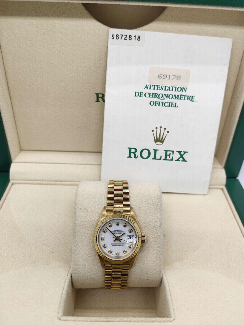 劳力士金劳69178 女士26mm表径 稀有原大钻白瓷盘 整表18K黄金材质 S字头保书 难得