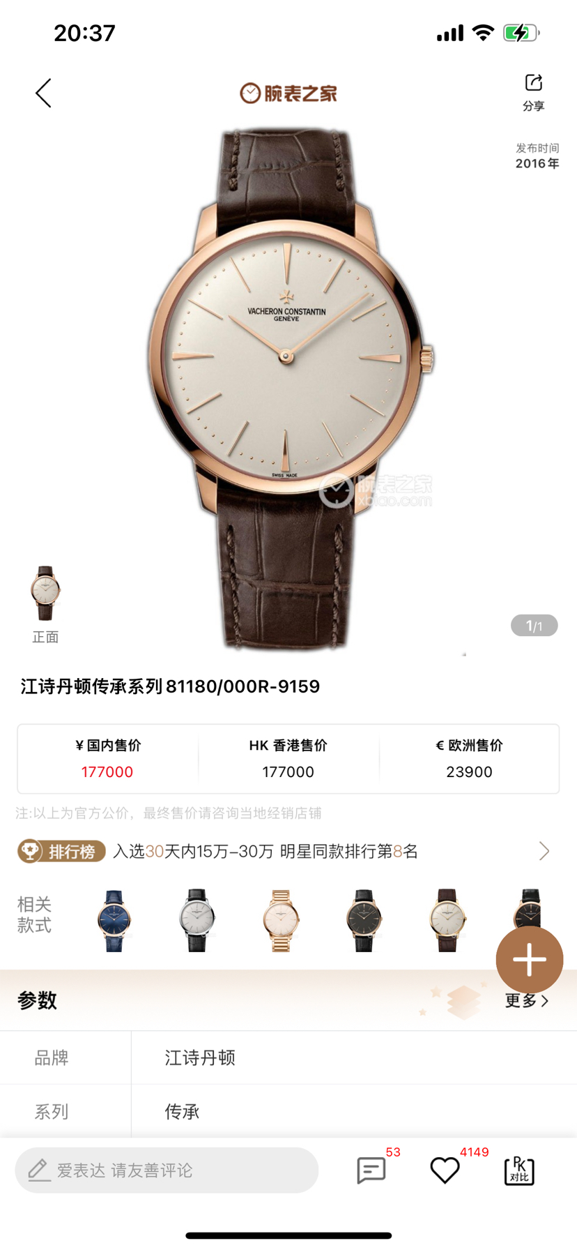 江诗丹顿/Vacheron Constantin PATRIMONY传承系列 81180 玫瑰金 未使用 13年 闲置新