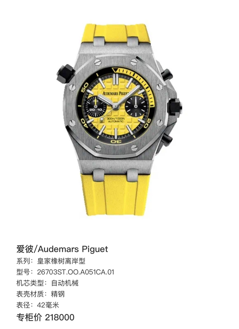 爱彼26703ST.OO.A051CA.01,单表,皇家橡树离岸型系列,42表径,精钢材质,计时功能,公价218000,现货好价,编号:273273