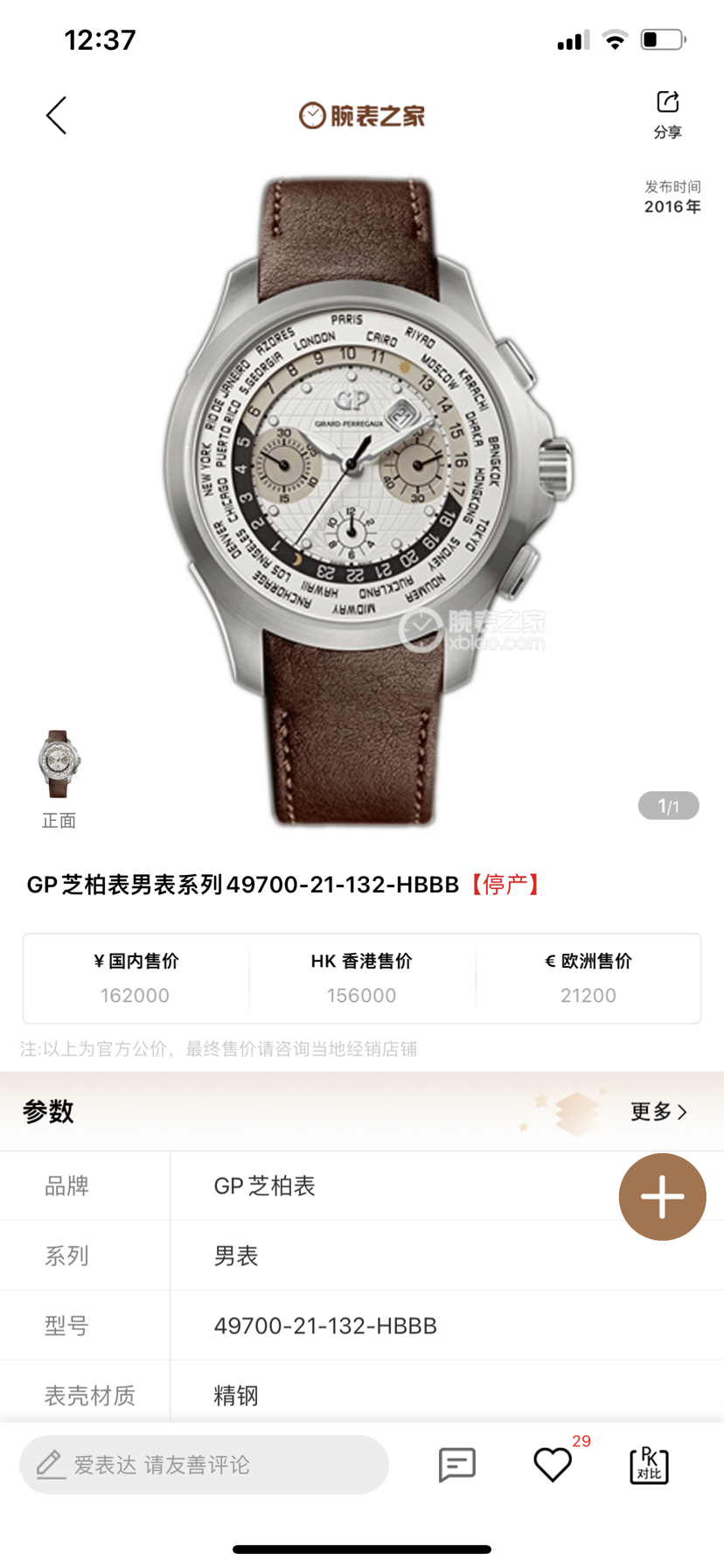 芝柏男表系列男士机械表 型号:49700-21-132-HBBB 44mm表盘 性价比高 表壳钛金属材质 功能带有日期显示/世界时/计时 原价162000 现货好价出