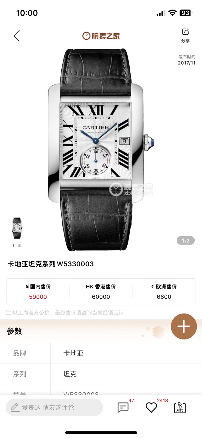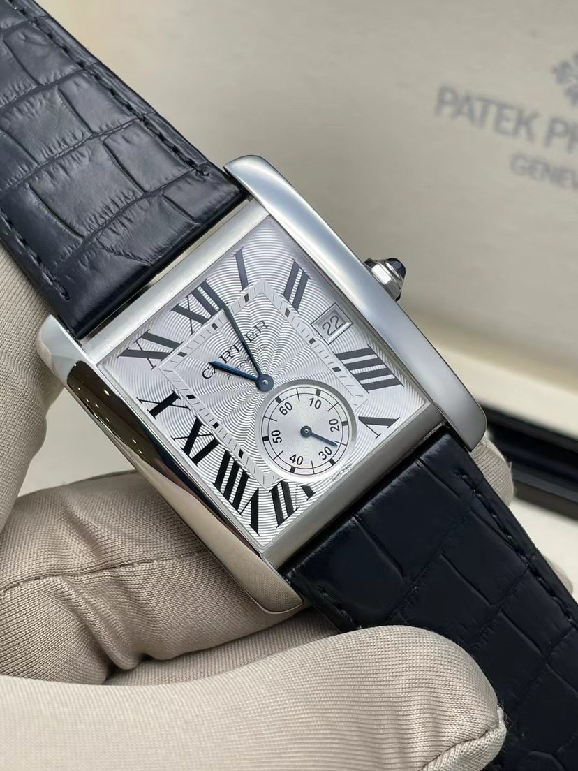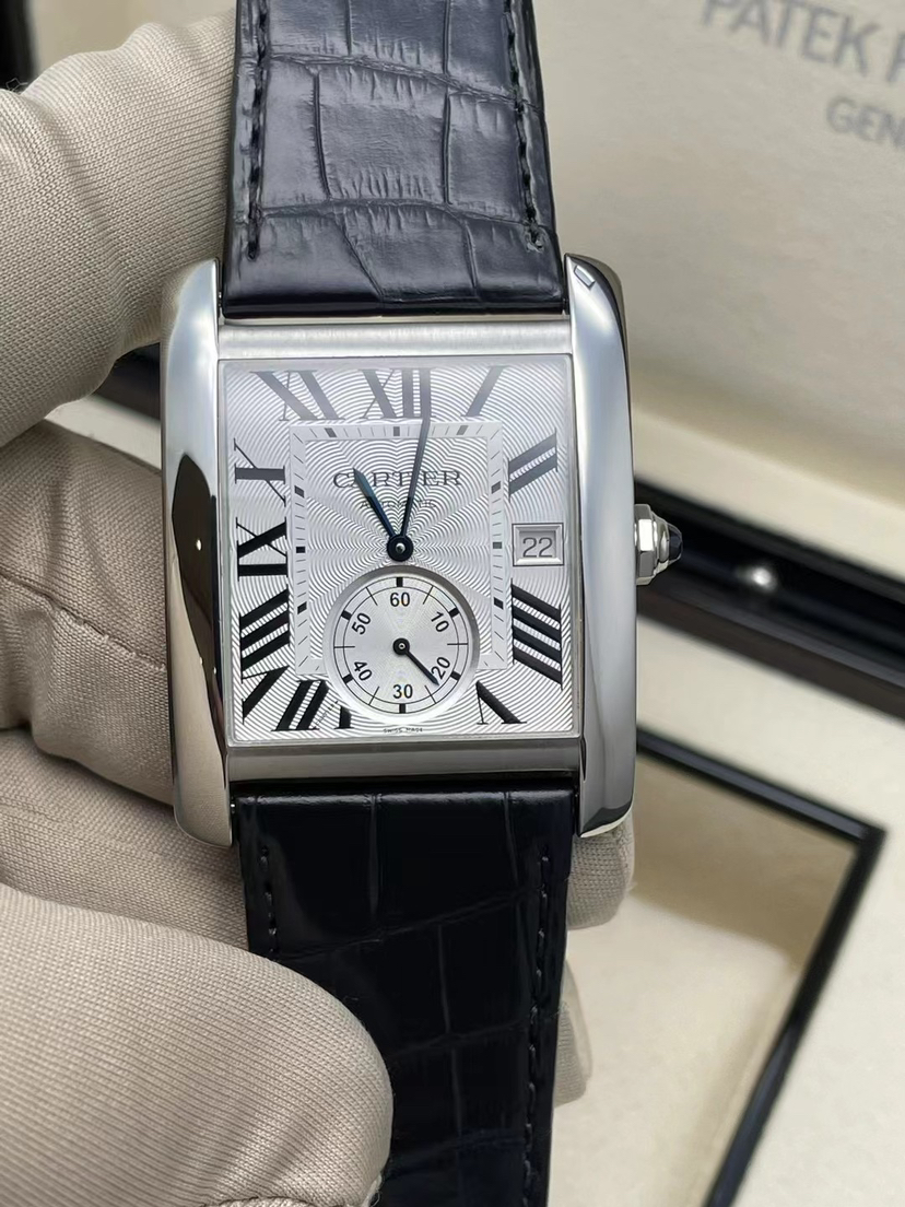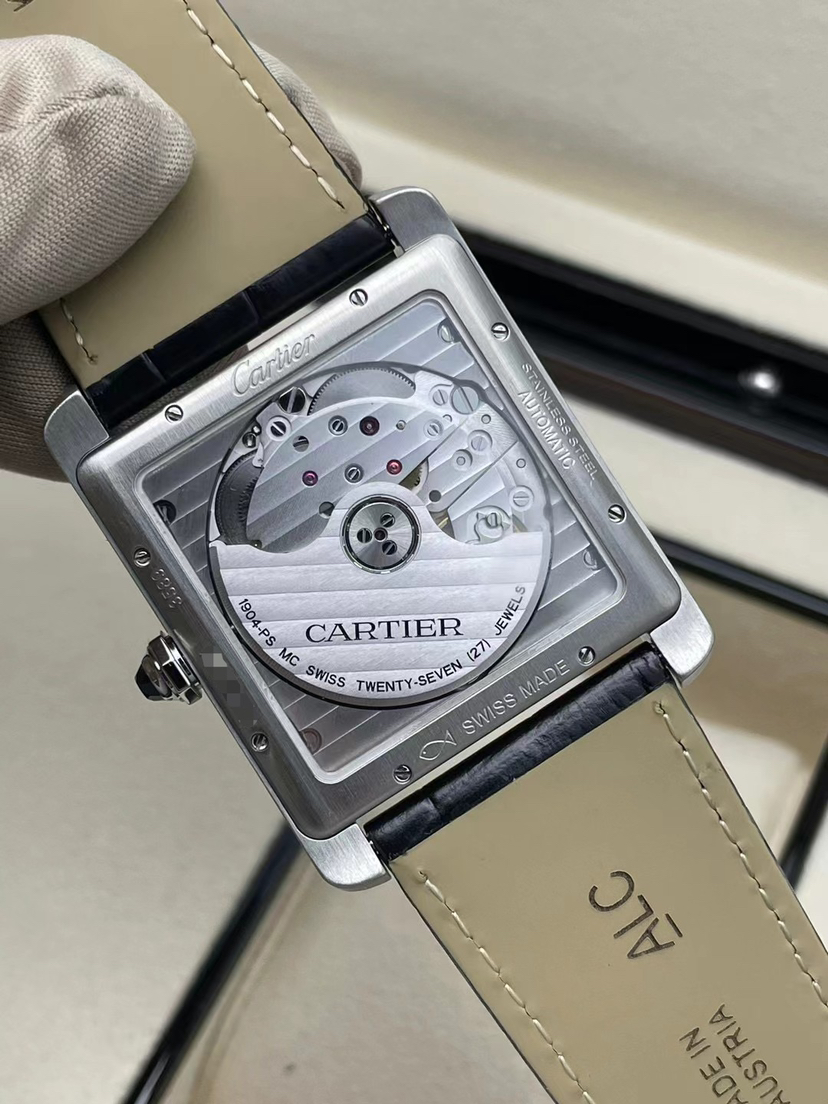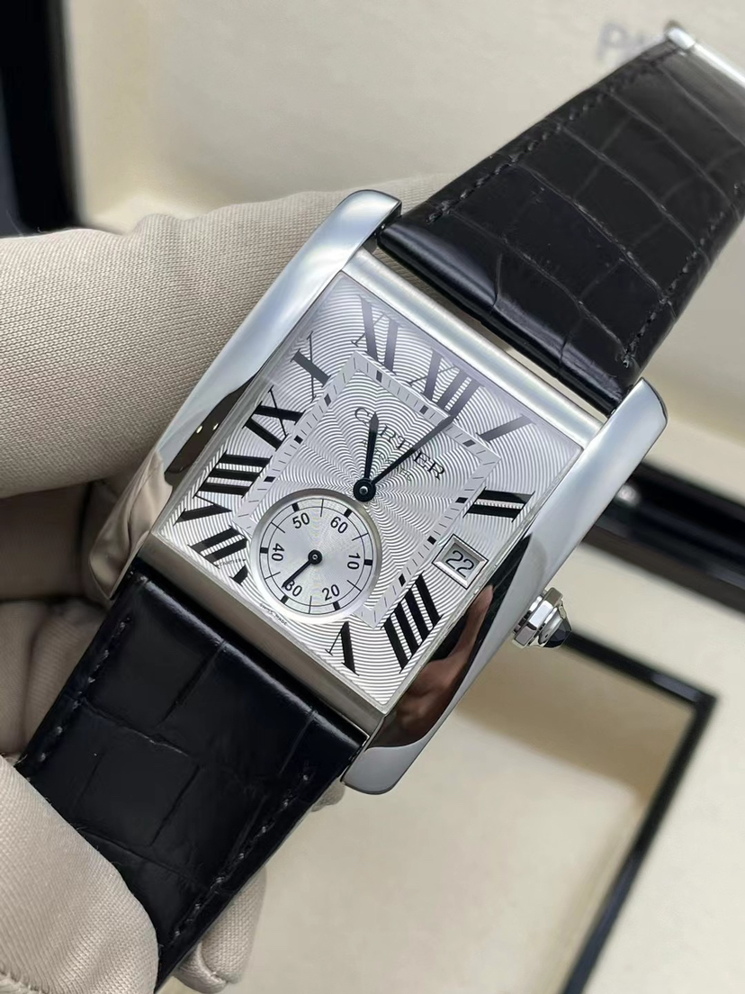 卡地亚刘德华同款坦克系列W5330003男表自动机械、34.3x44.0表径、精钢材质、专柜售价59000