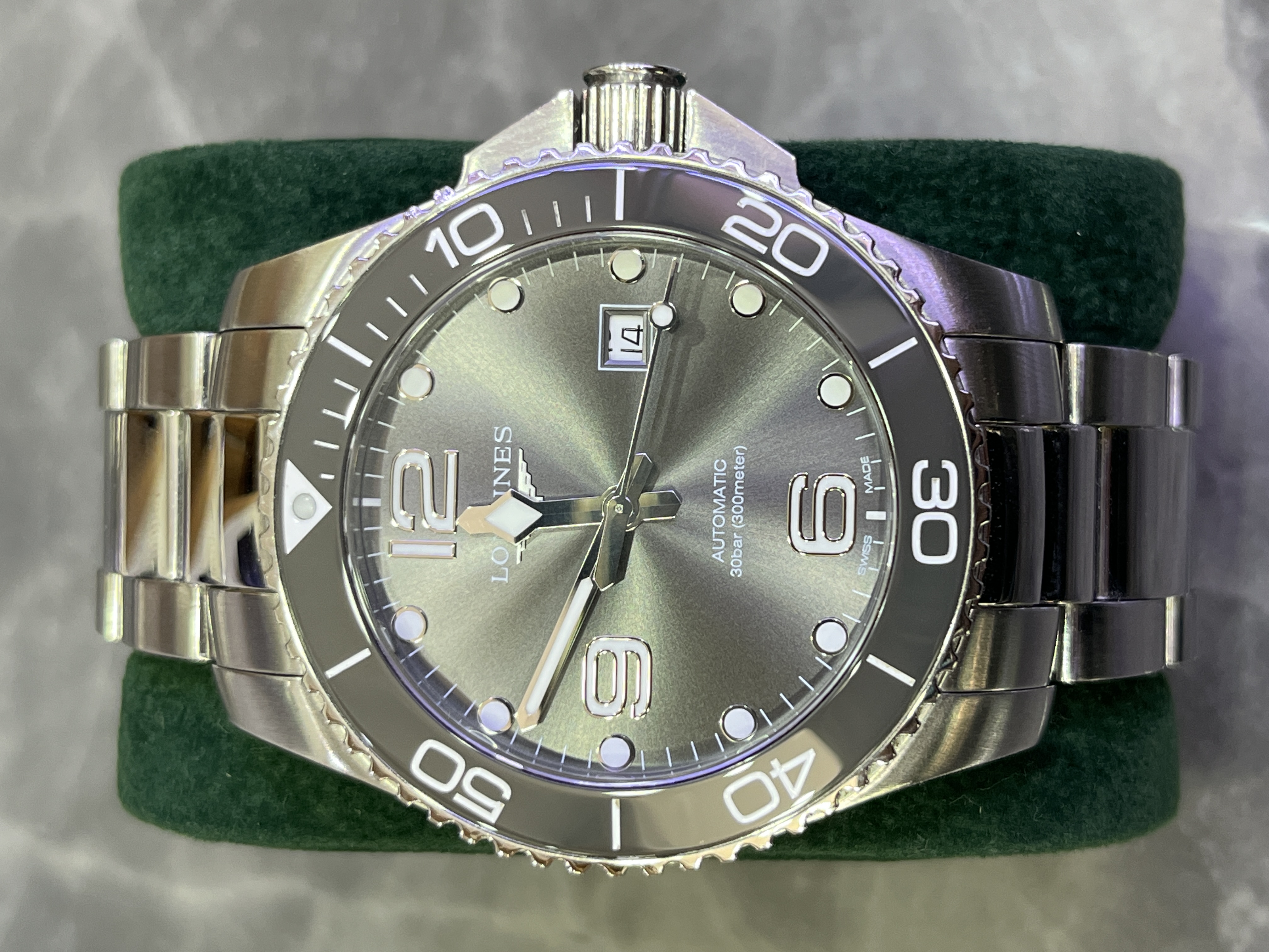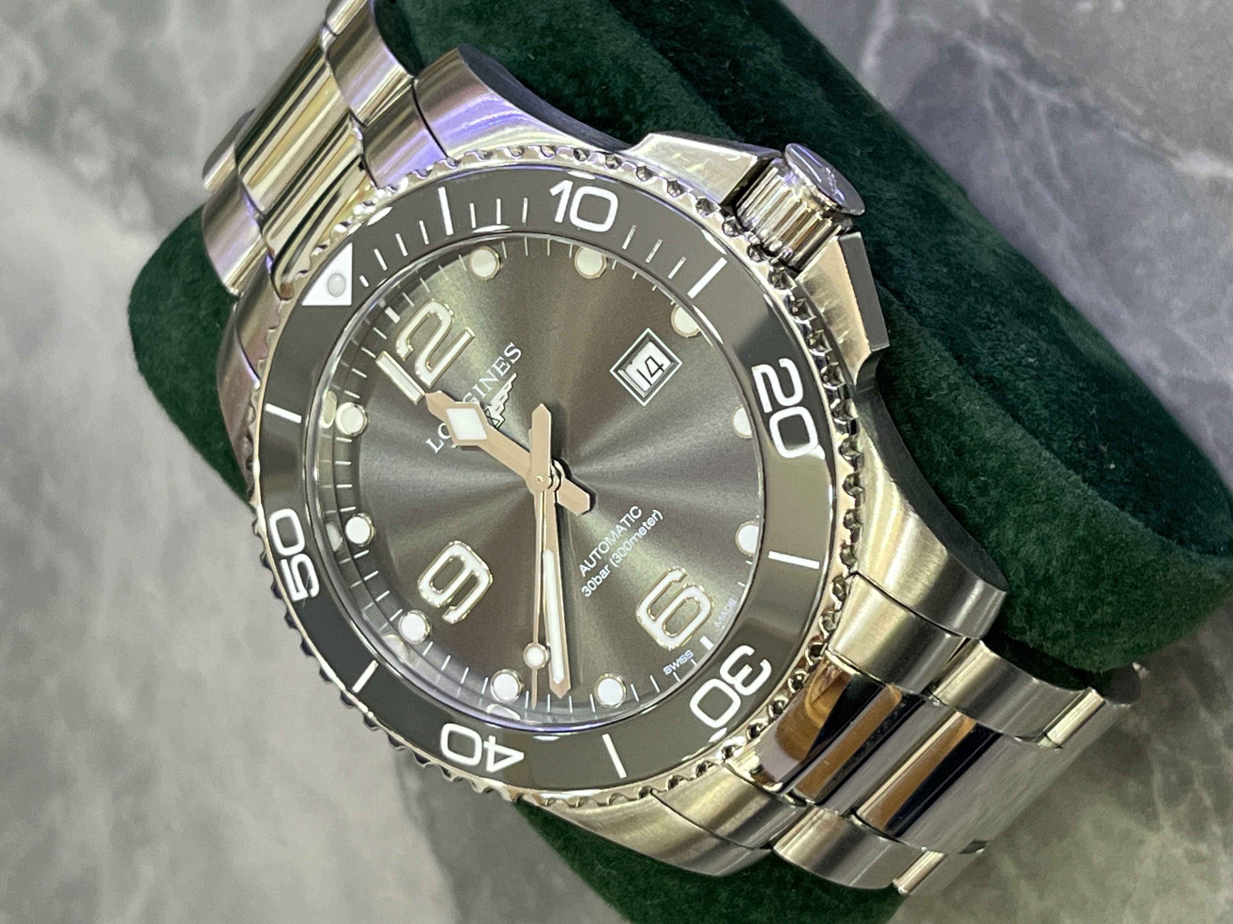 浪琴康卡斯系列L3.782.4.76.6男士机械腕表,43mm表径,灰色表盘,最新款灰面陶瓷表圈,新款康卡斯,专柜公价14600元