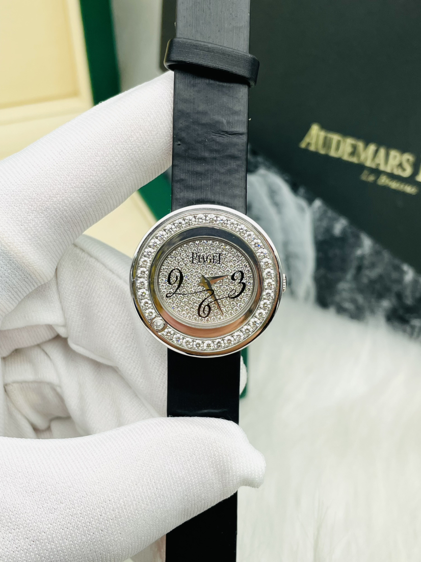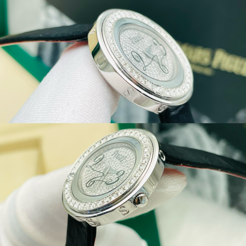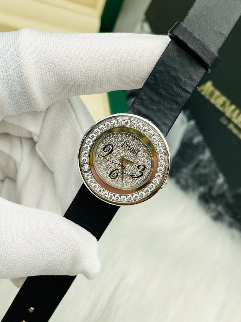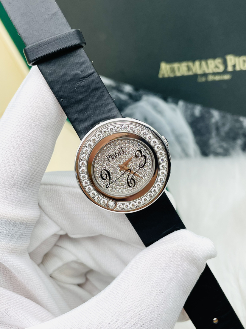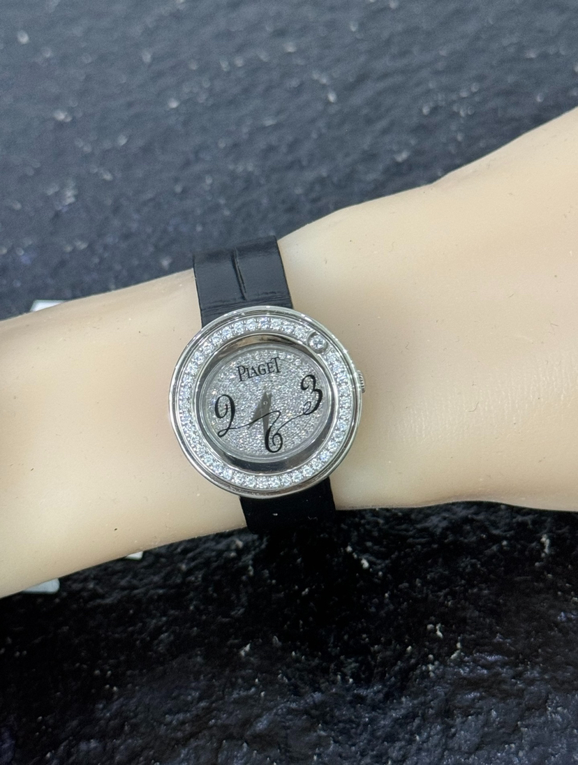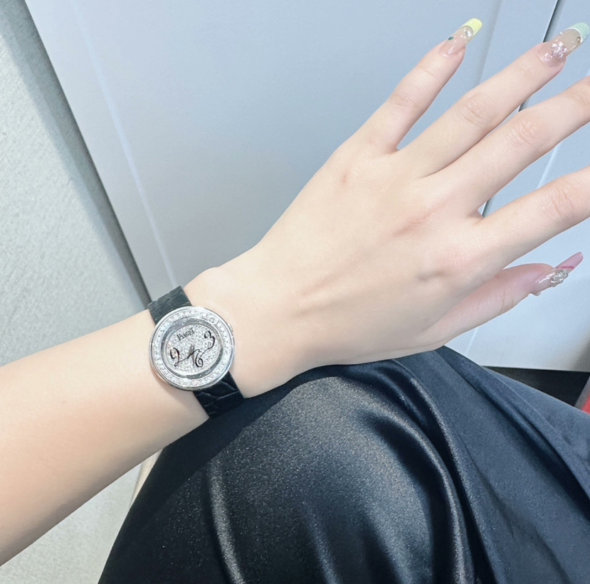 伯爵POSSESSION系列18K白金原镶钻可旋转表圈石英女神腕表
