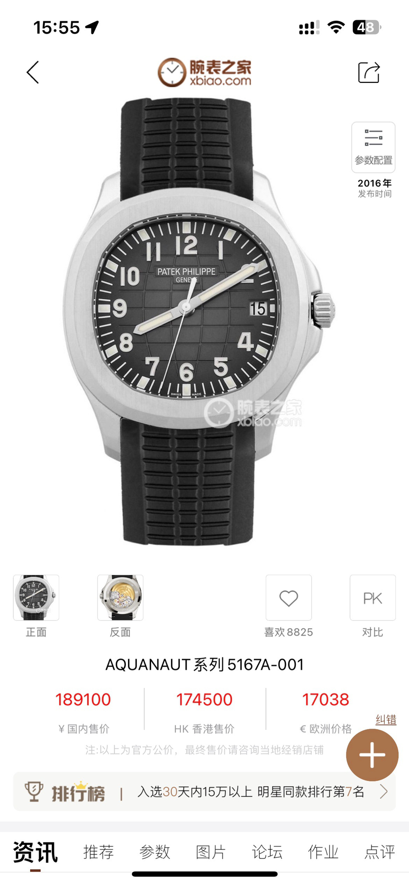 PP 百达翡丽5167A-001胶带手雷系列钢款自动机械腕表 表径40mm 日期显示 专柜售价: 189100 专柜一表难求!理财产品!硬货!价硬!现货好价秒