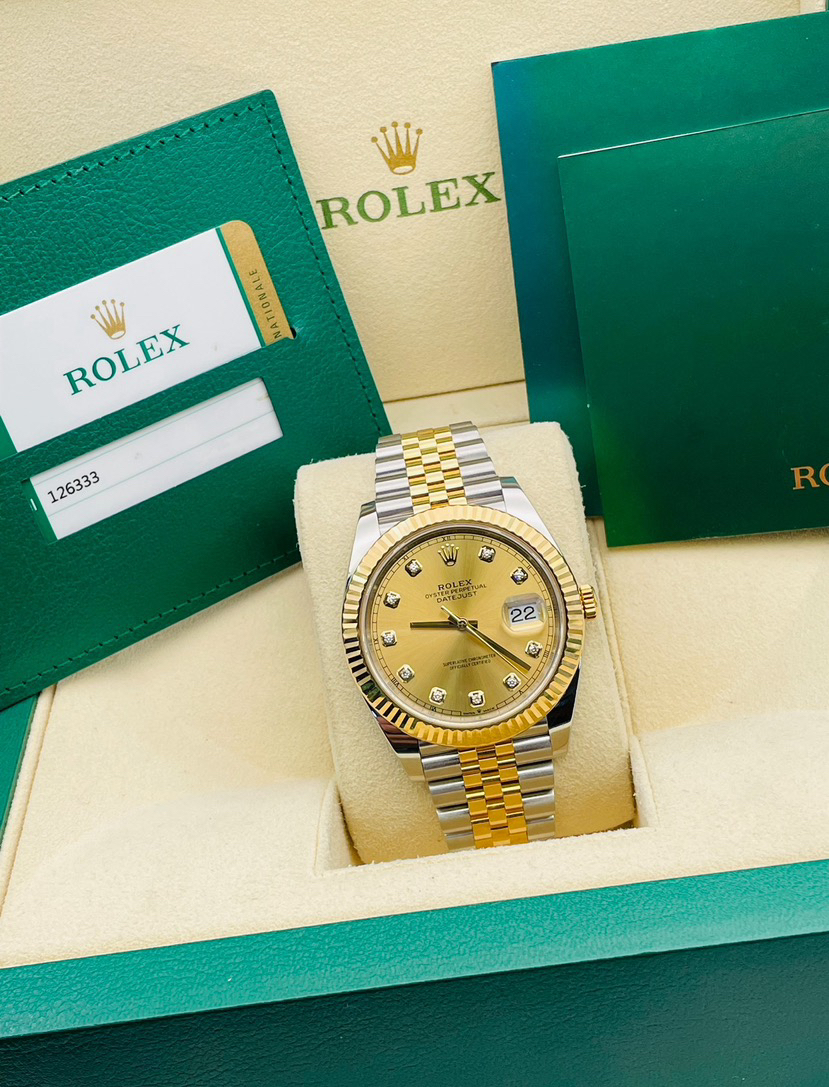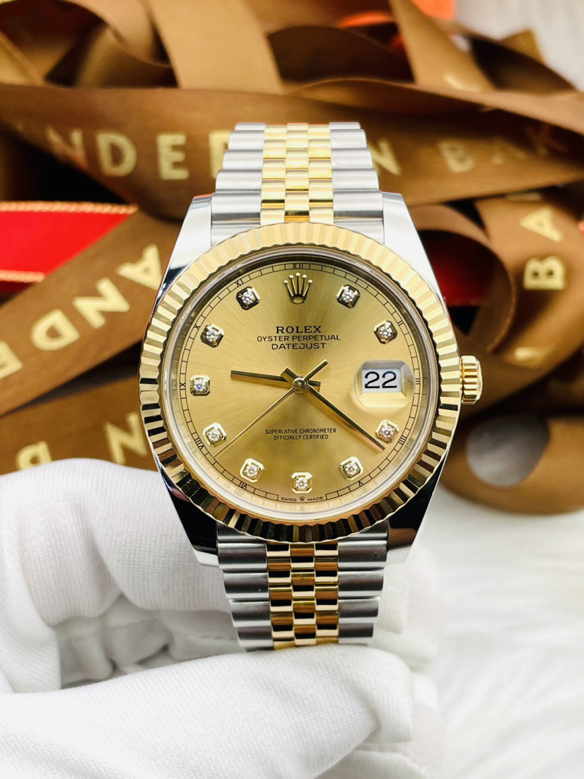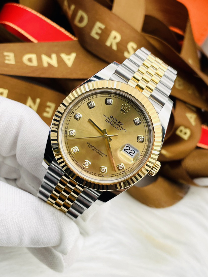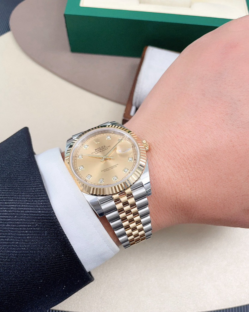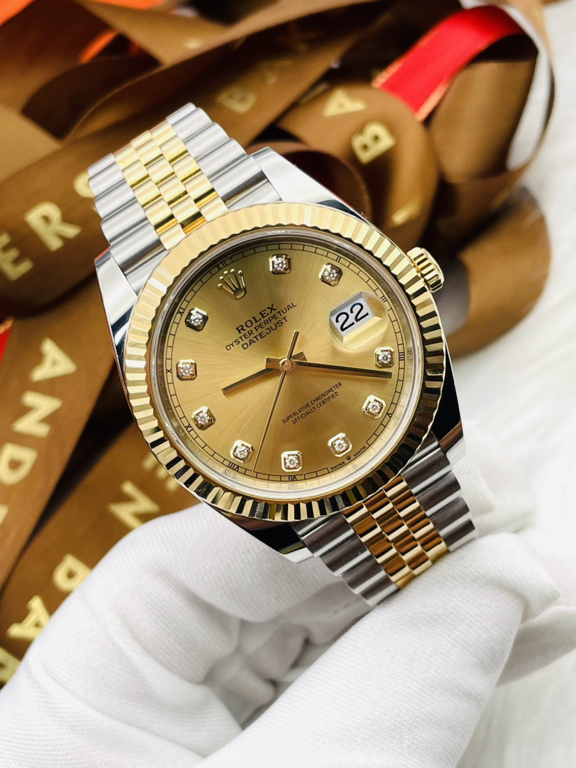 劳力士日志型系列18K黄金精钢原镶时标钻自动机械男表