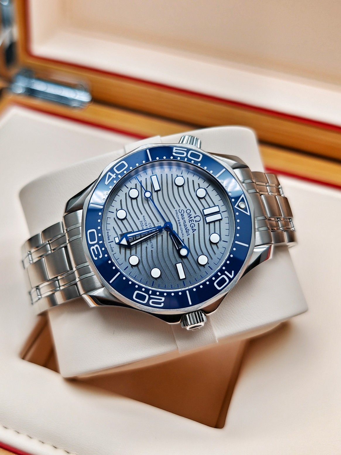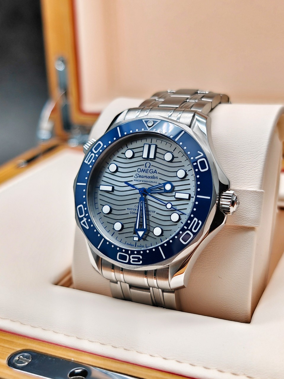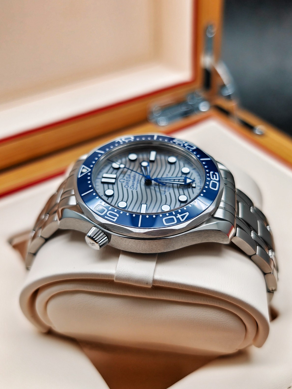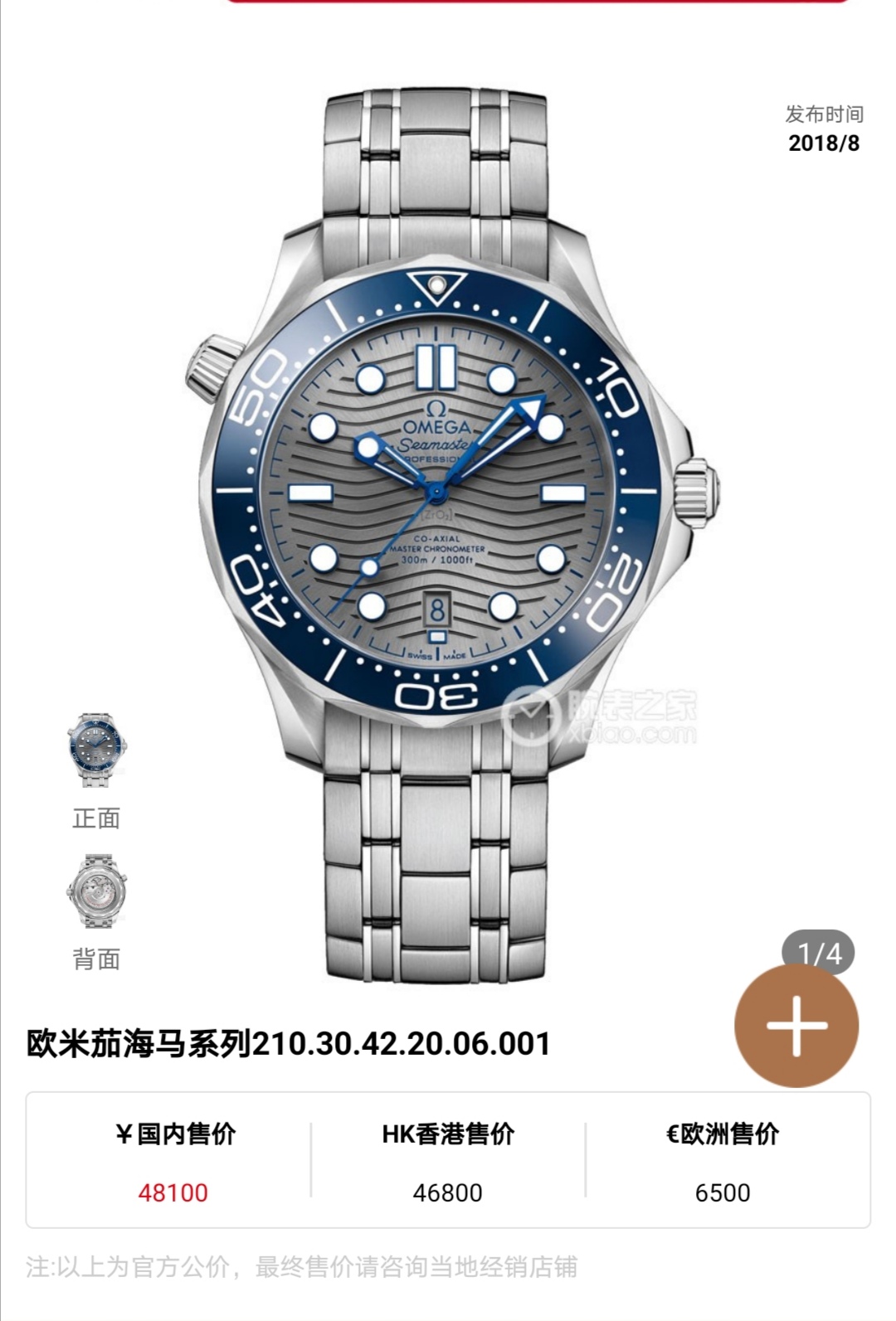 欧米茄新海马300系列210.30.42.20.06.001,灰盘蓝陶瓷外圈款,42mm表径,全套未使用品,现货好价有。
