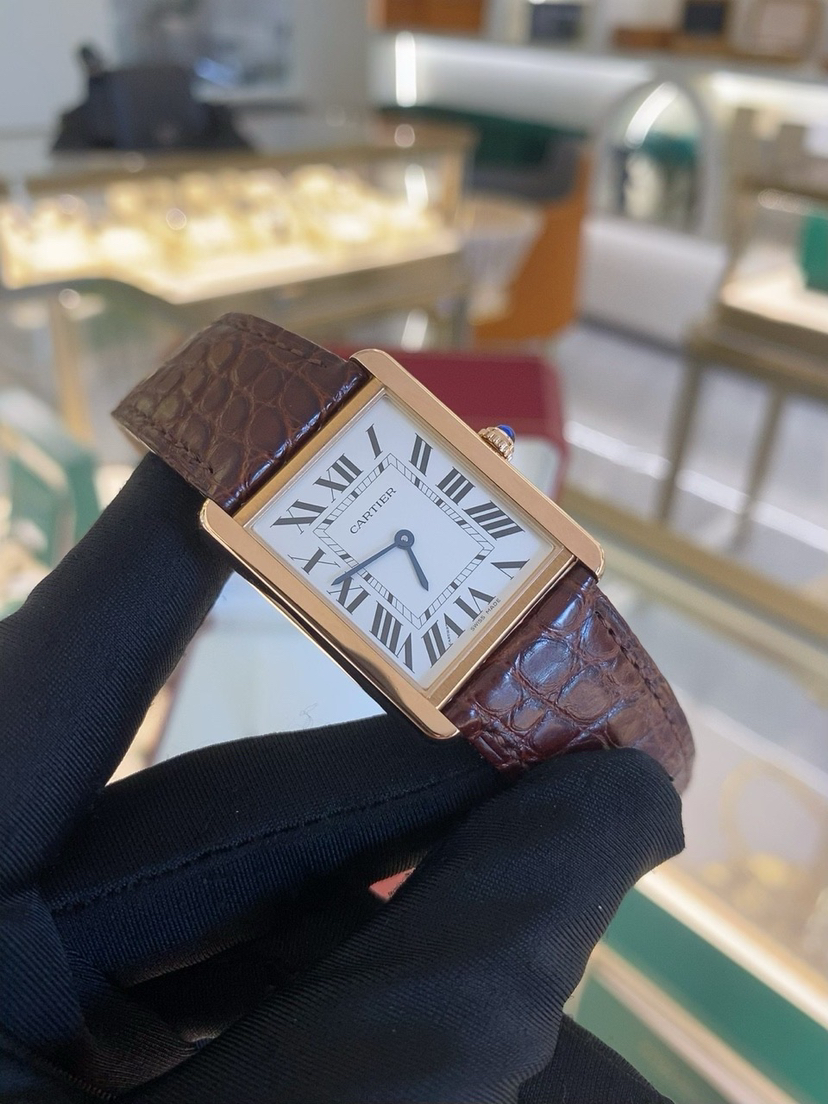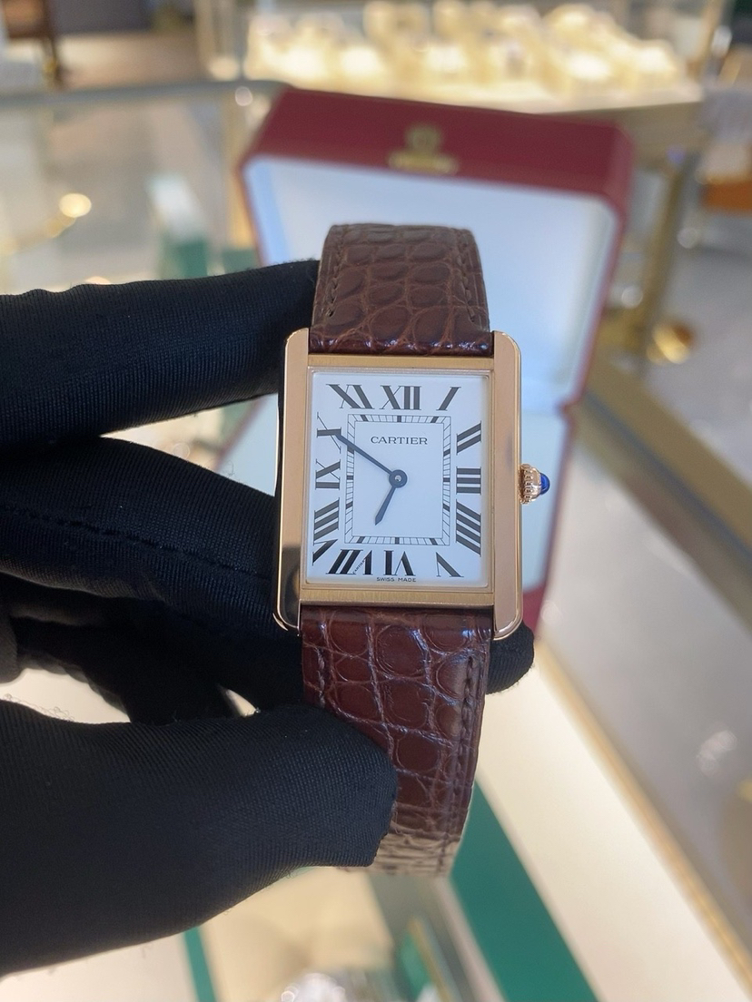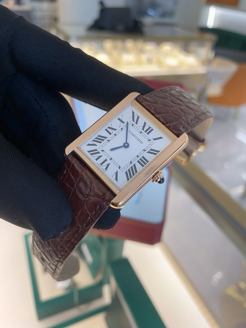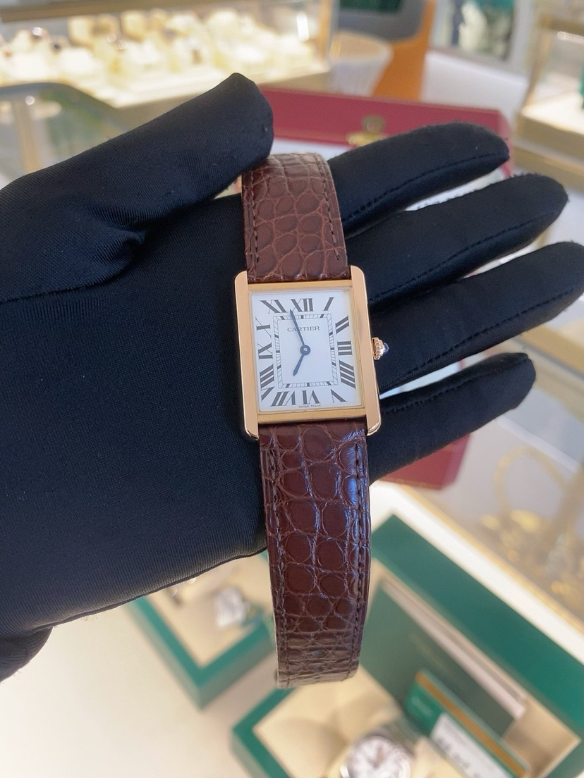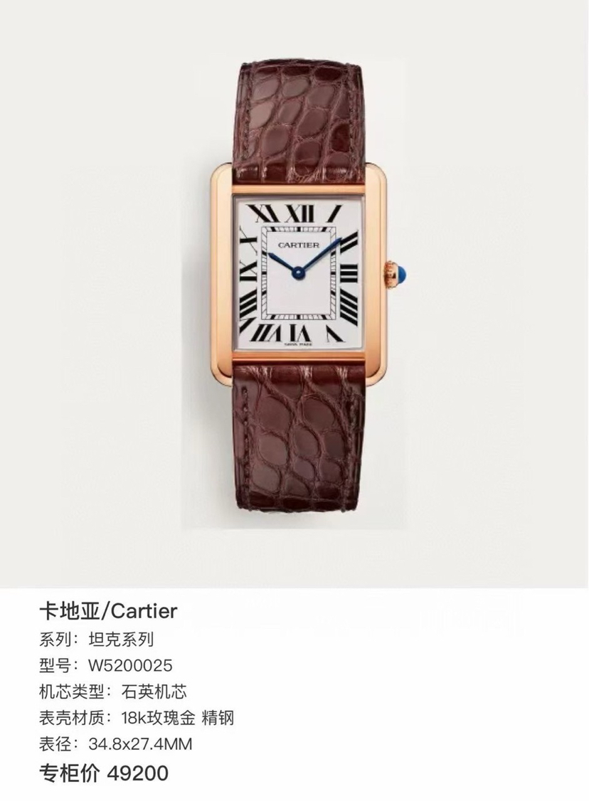 卡地亚腕表坦克系列,型号W5200025,石英机芯18k玫瑰金精钢34.8x27.4MM,极品全套,完美品相,专柜价49200