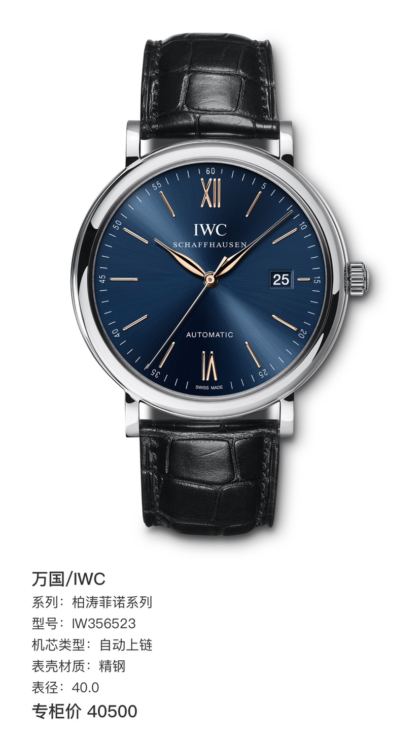 万国/IWC 柏涛菲诺系列 IW356523 自动上链 精钢 40.0 附件:全套 专柜价40500
