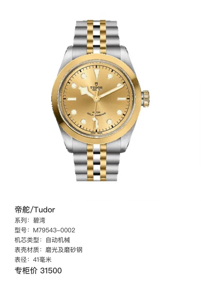 帝舵/Tudor 碧湾 M79543-0002 自动机械 磨光及磨砂钢 41毫米 专柜价31500