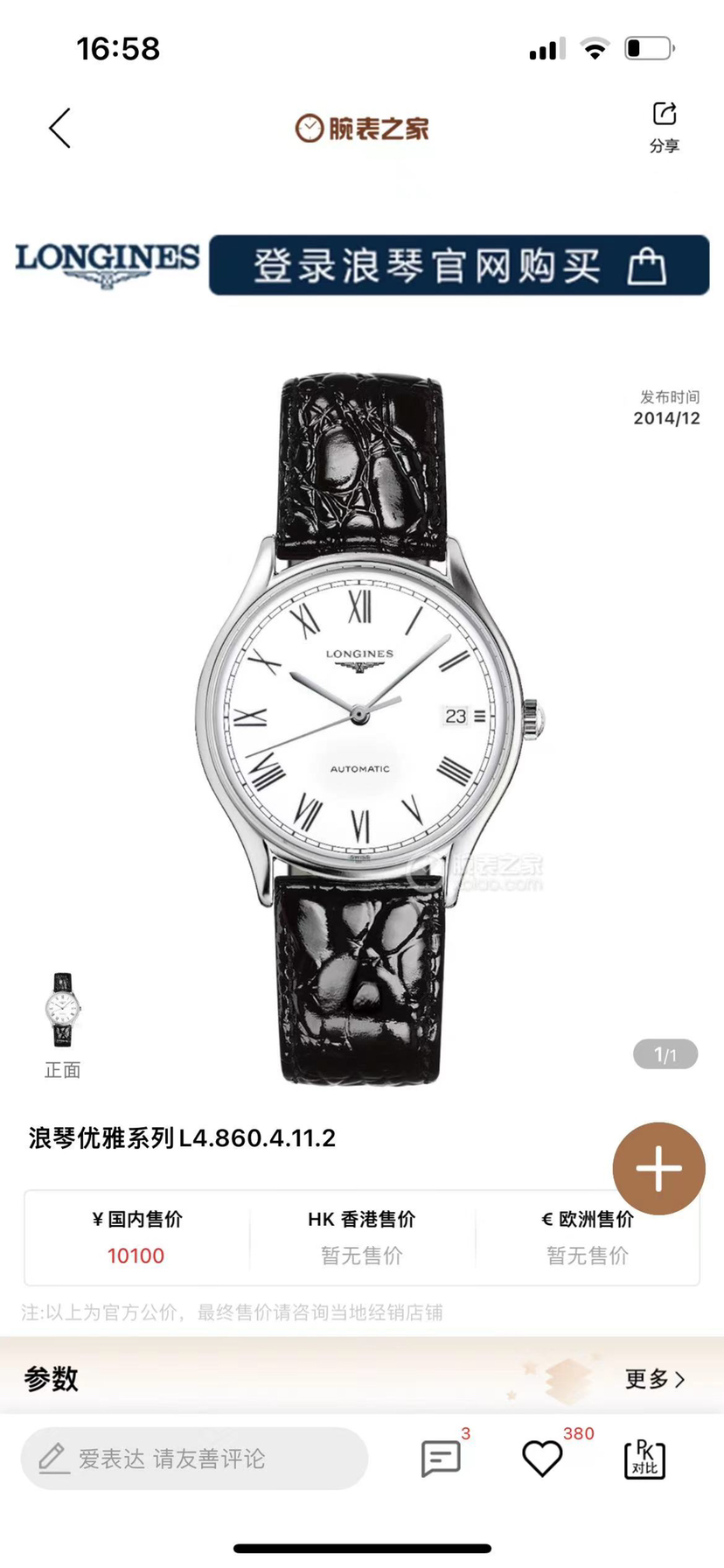 浪琴律雅L4.860.4.11.2系列自动机械表 表径35mm 热门款精美白色表盘罗马数字刻度显示简约大气 日期显示 新款888机芯 原价10100
