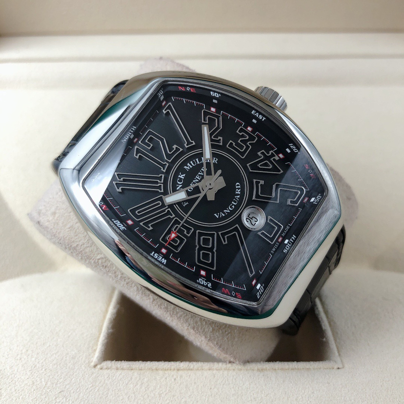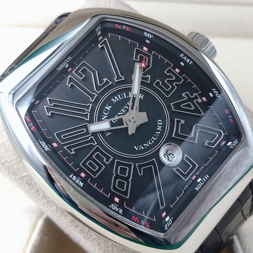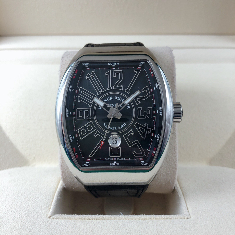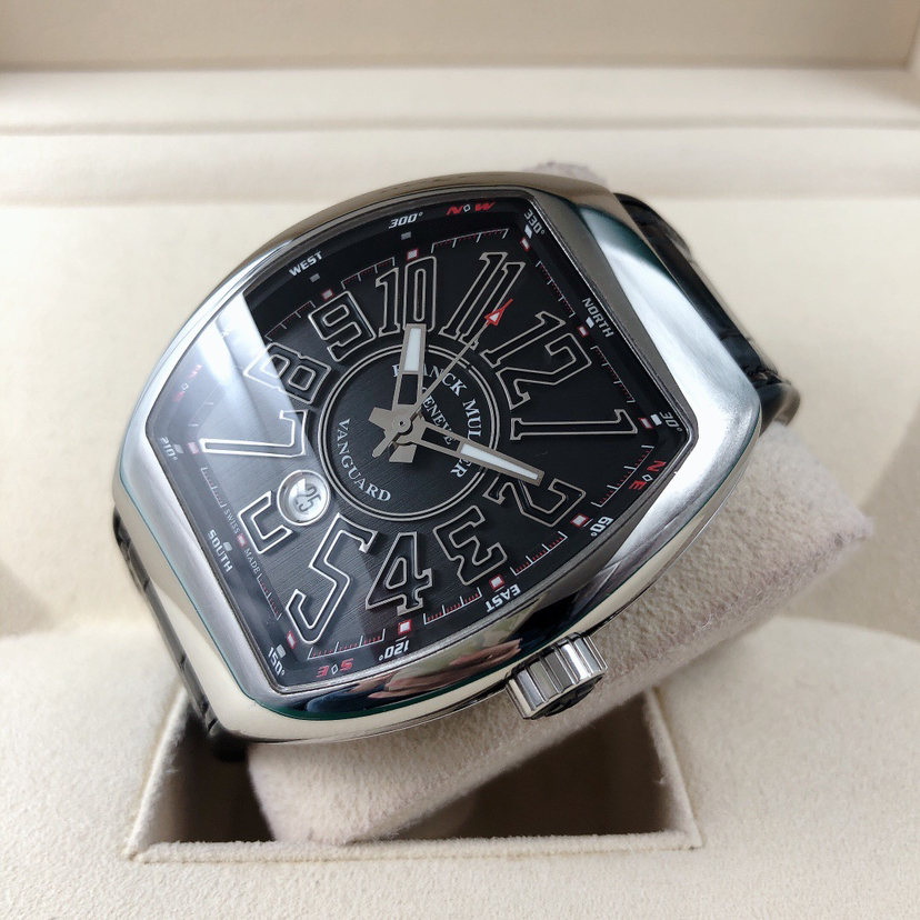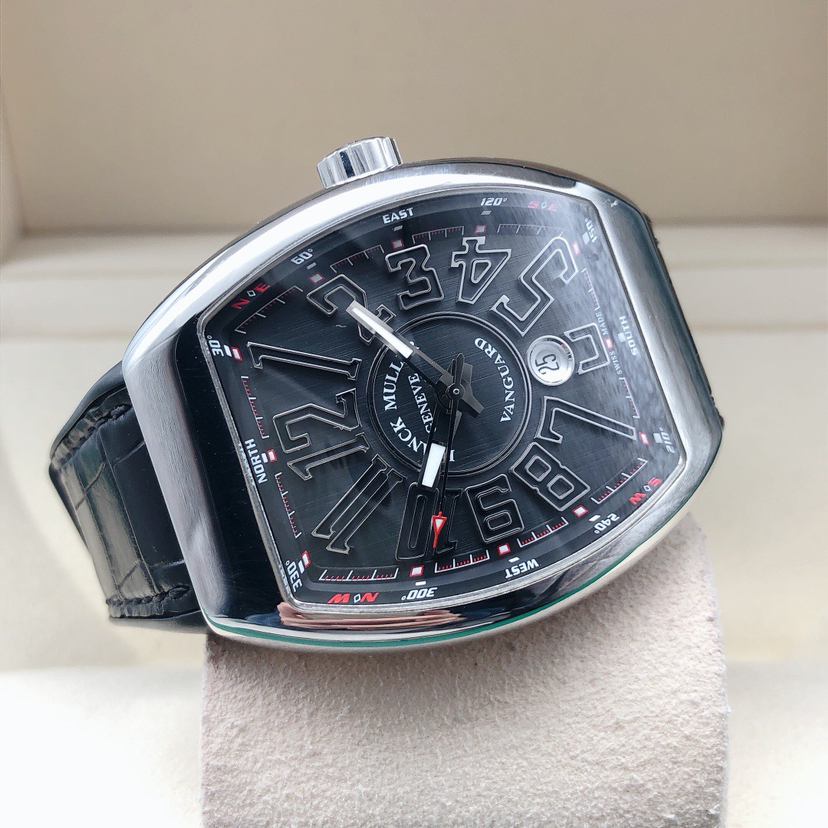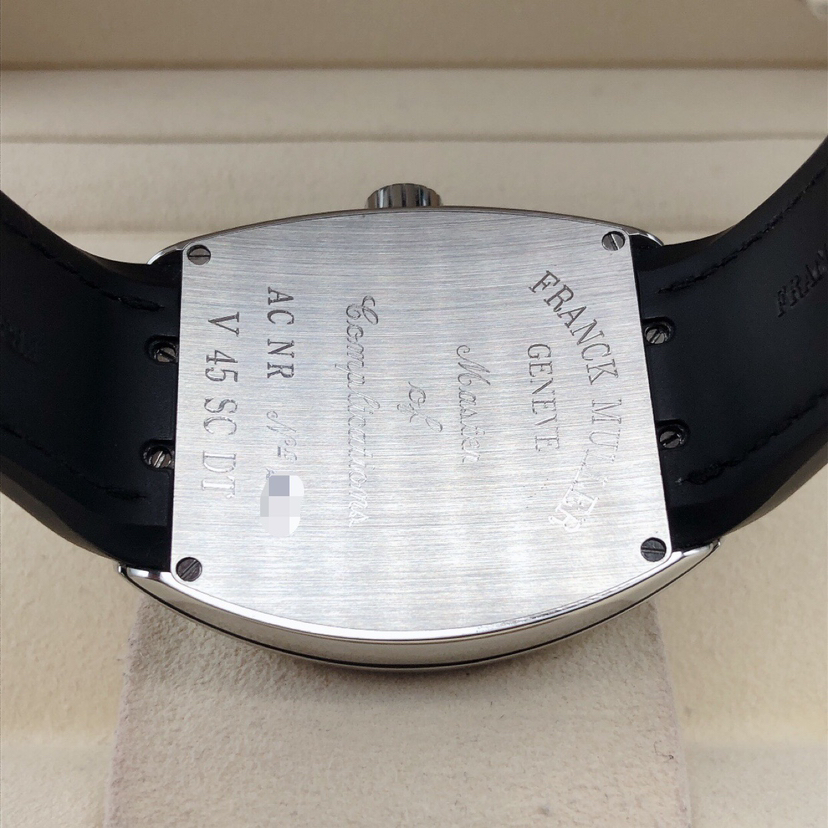 法兰克穆勒V45 SC DT男士腕表 搭载法兰克穆勒自动机械机芯 43✖️53表径大小 标志性酒桶型腕表 大三针设计 阿拉伯数字刻度 六点钟日历显示 全套空白卡 公价8万左右 现好价