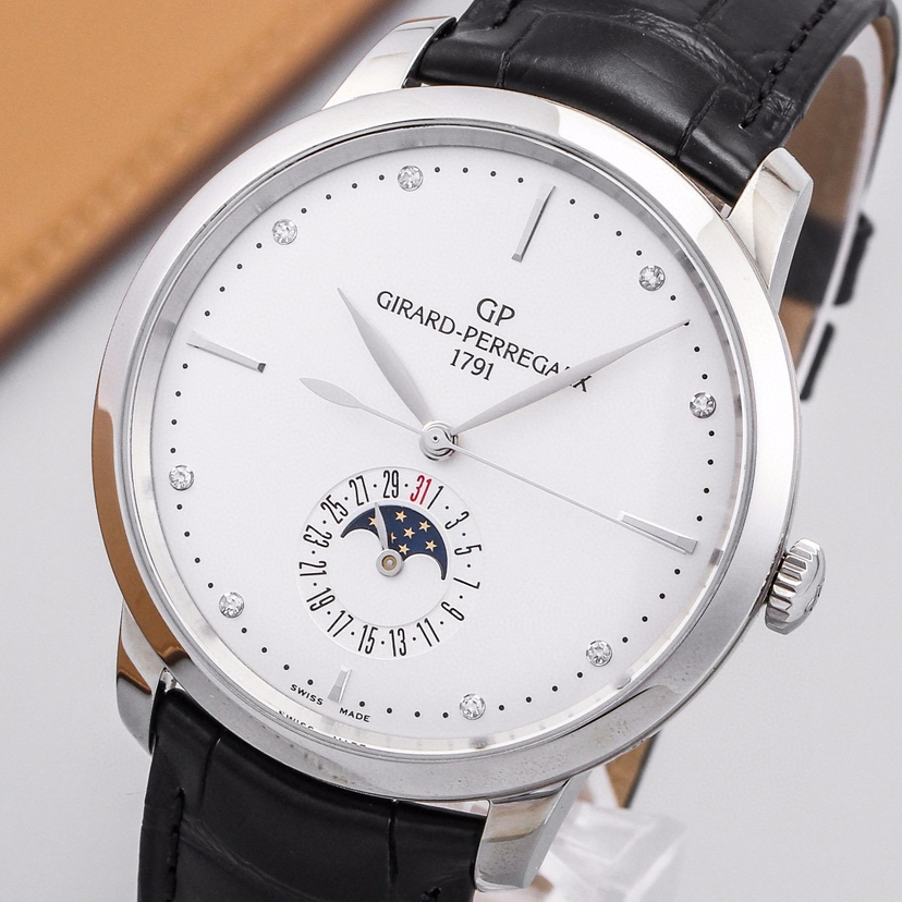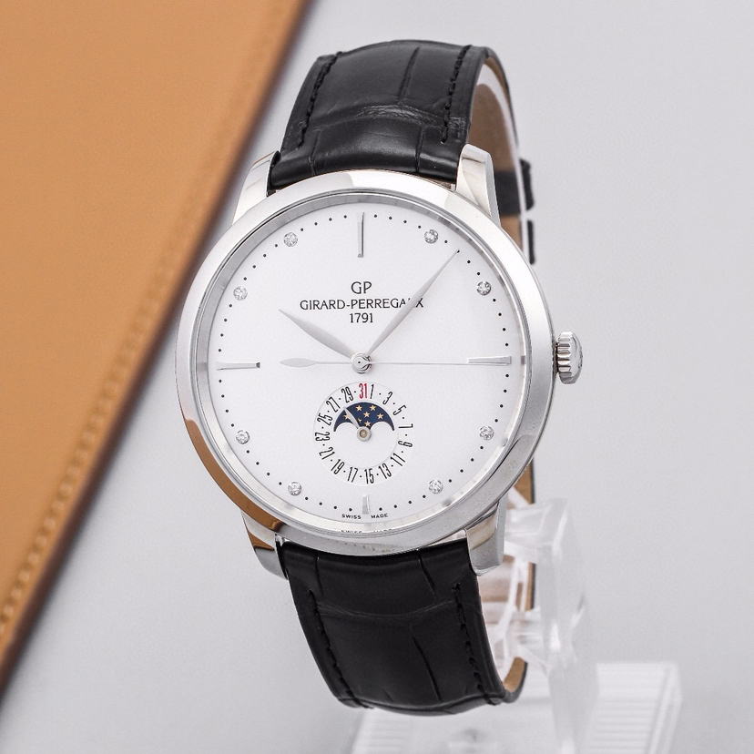 全新芝柏1966系列 49545-11-1A1-BB60 40毫米表径 自动机械男士腕表 白色表盘 刻度镶嵌钻石 带有月相 日历功能 简单大方 专柜售价87200,22年全套未使用,现在好价