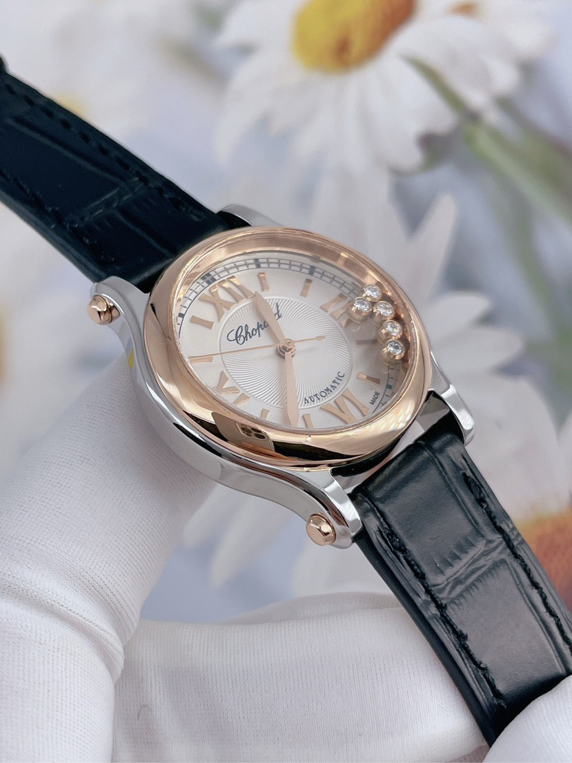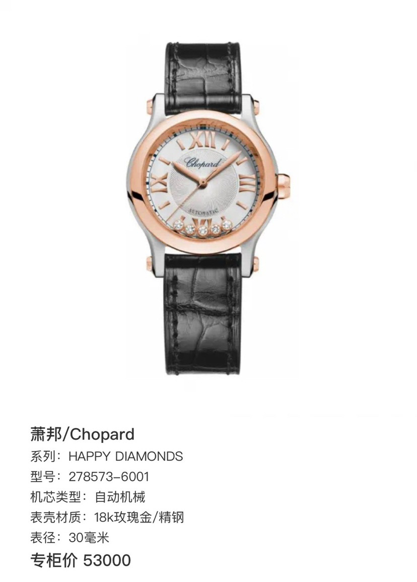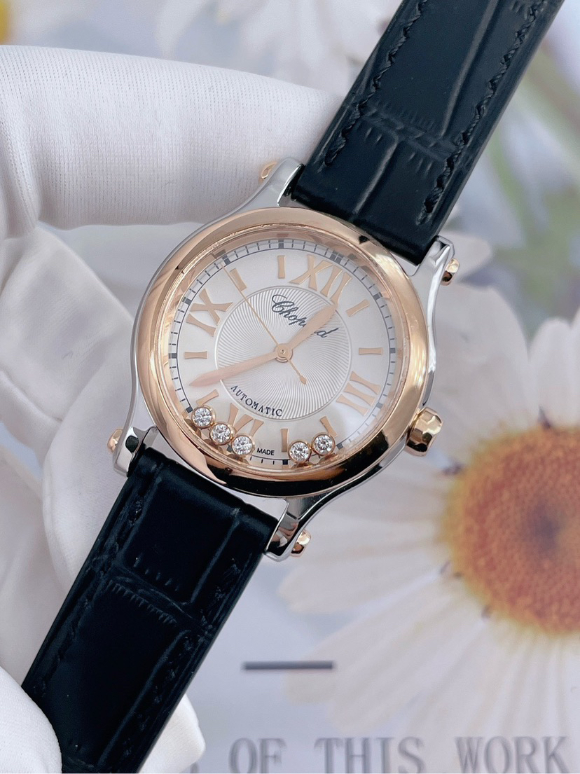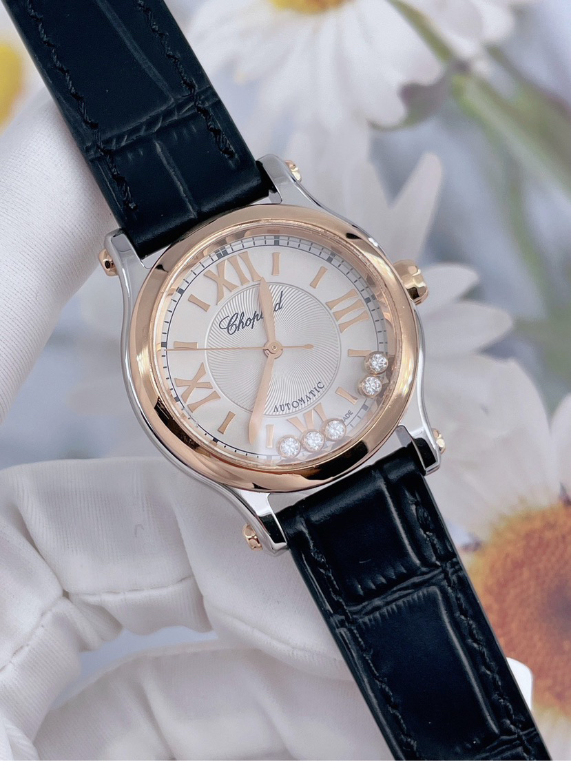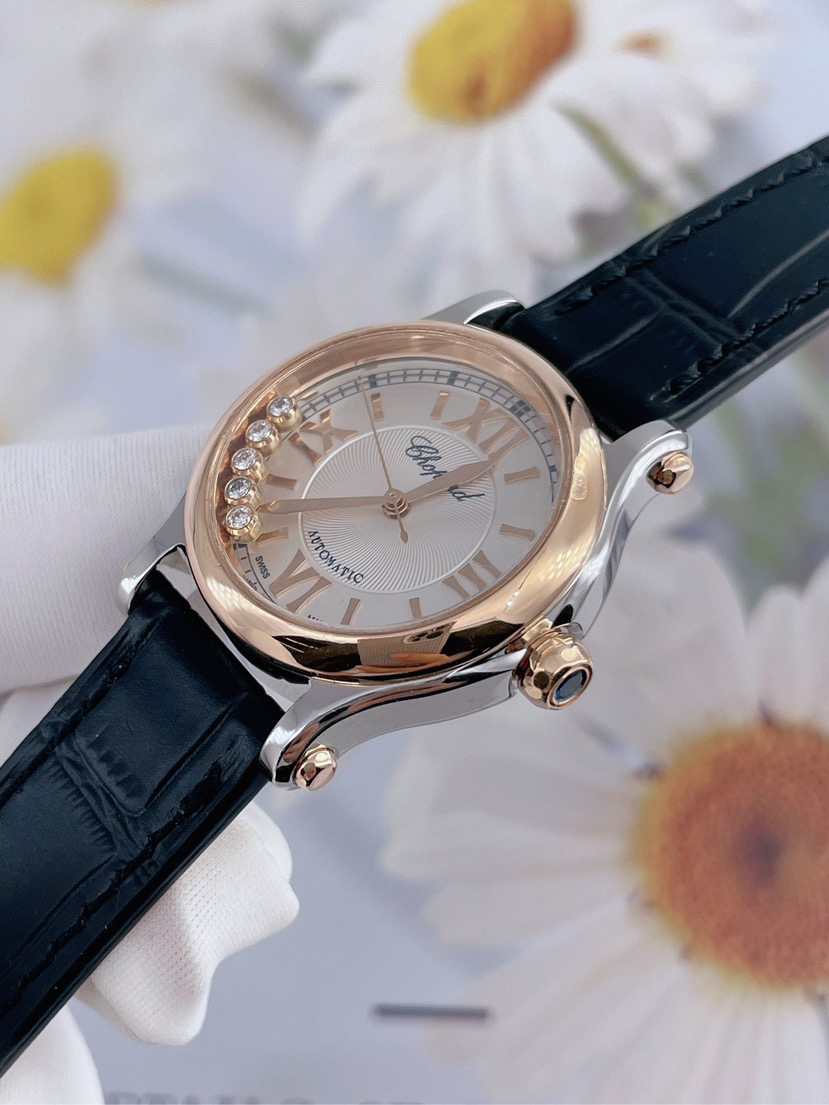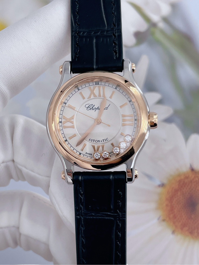 萧邦/Chopard HAPPY DIAMONDS 278573-6001 自动机械女士腕表 快乐五钻 18k玫瑰金/精钢 30毫米表径 专柜价 53000 现单表好价