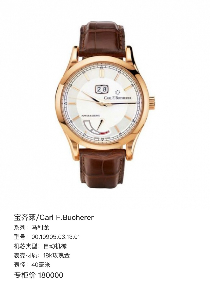 宝齐莱马利龙系列 男士腕表,型号参考最后一张,自动机械,表径40mm,整表18k全金打造,大日历窗,动力显示,公价参考18万,现在好价