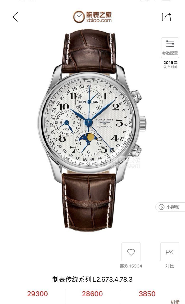 Longines/浪琴 名匠系列 L2.673.4.78.3,八针月相,自动机械男表,计时设计,月份、日期、星期、月相显示,表径40mm,2022年极品大全套,公价¥29300~现货好价!