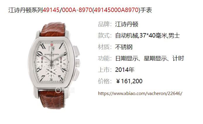 江诗丹顿/Vacheron Constantin 马耳他 49145/000A-9058 自动机械 不锈钢 37x40毫米 专柜价173000