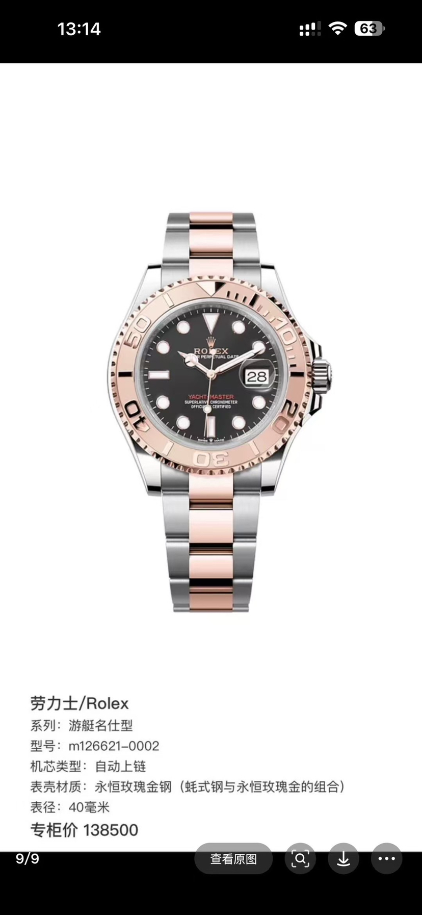 劳力士m126621-0002男士自动机械 新款间金游艇,黑面旋转金圈.表径40,公价138500,现货单表好价