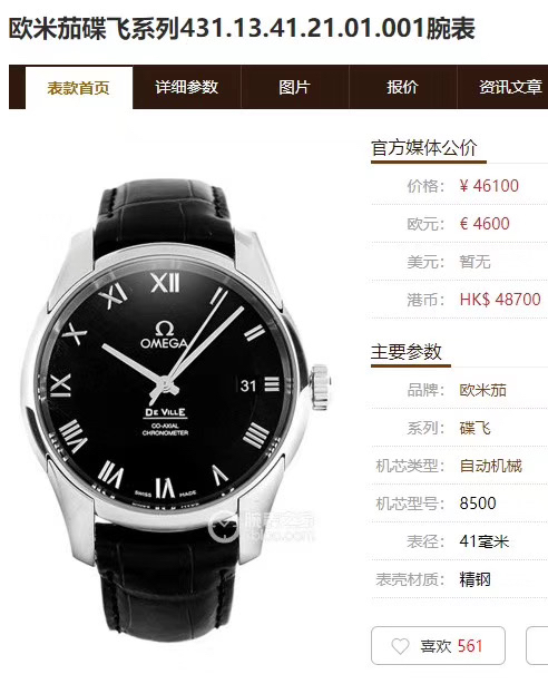 欧米茄碟飞431.13.41.21.01.001自动机械男表,表径41mm,黑色盘面, 搭载欧米茄当家主力8500机芯,走时精准,公价46100,现好价