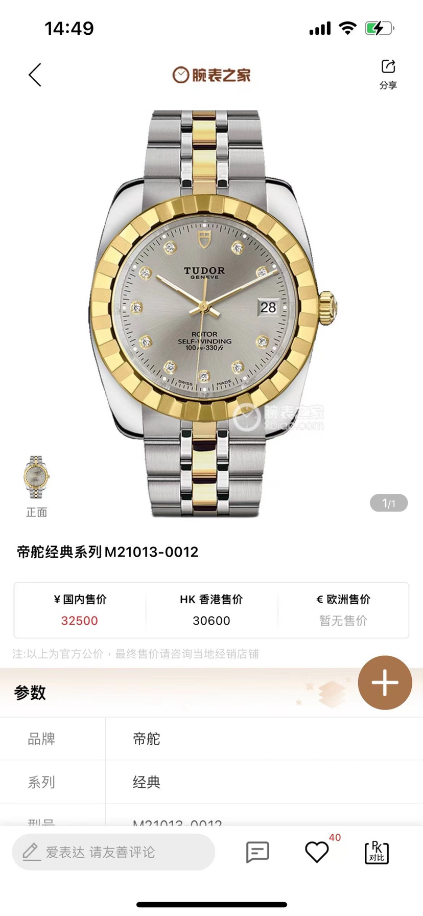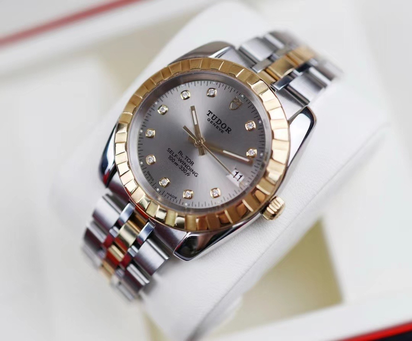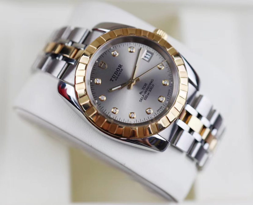 帝舵经典系列M21013-0012男士腕表,自动机械,表径38mm,精钢/18K黄金材质,灰色盘,日期显示,官价32500