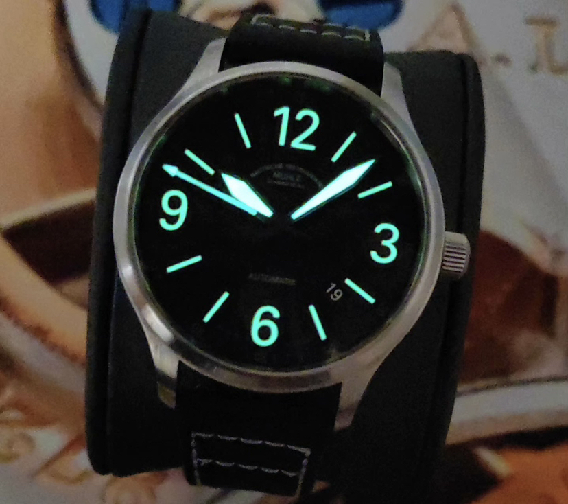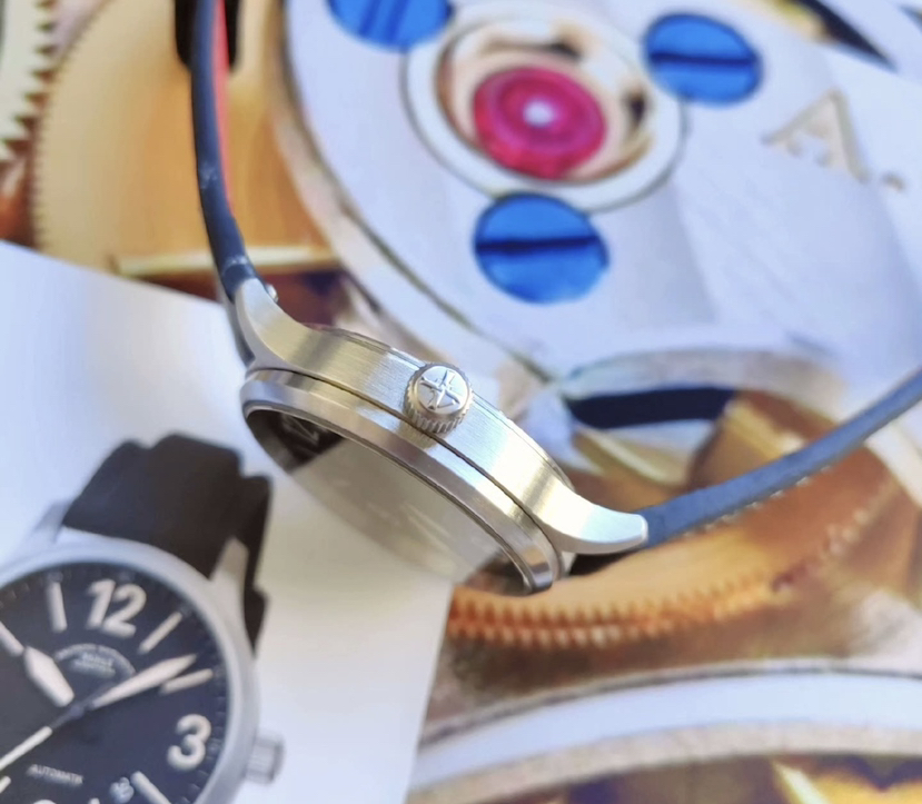 【介绍】:表径40毫米,哑光黑色,拉丝表壳,锁把,背透自动机芯,啄木鸟微调,蓝钢螺钉。后换的魔纹表带,原装表扣。具体参数自己查吧,型号见最后一图。